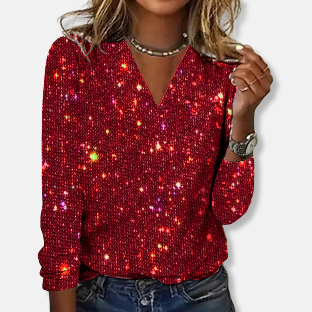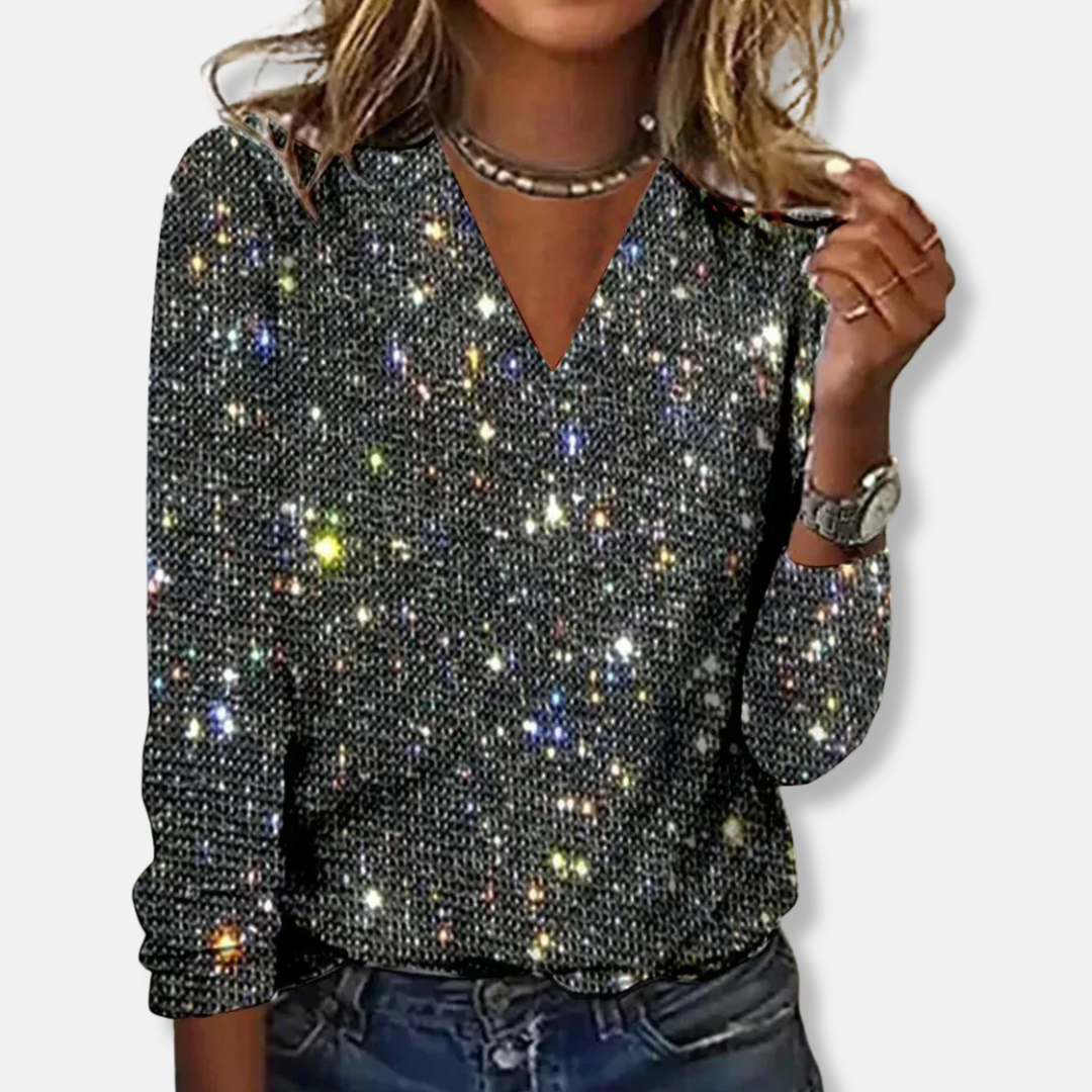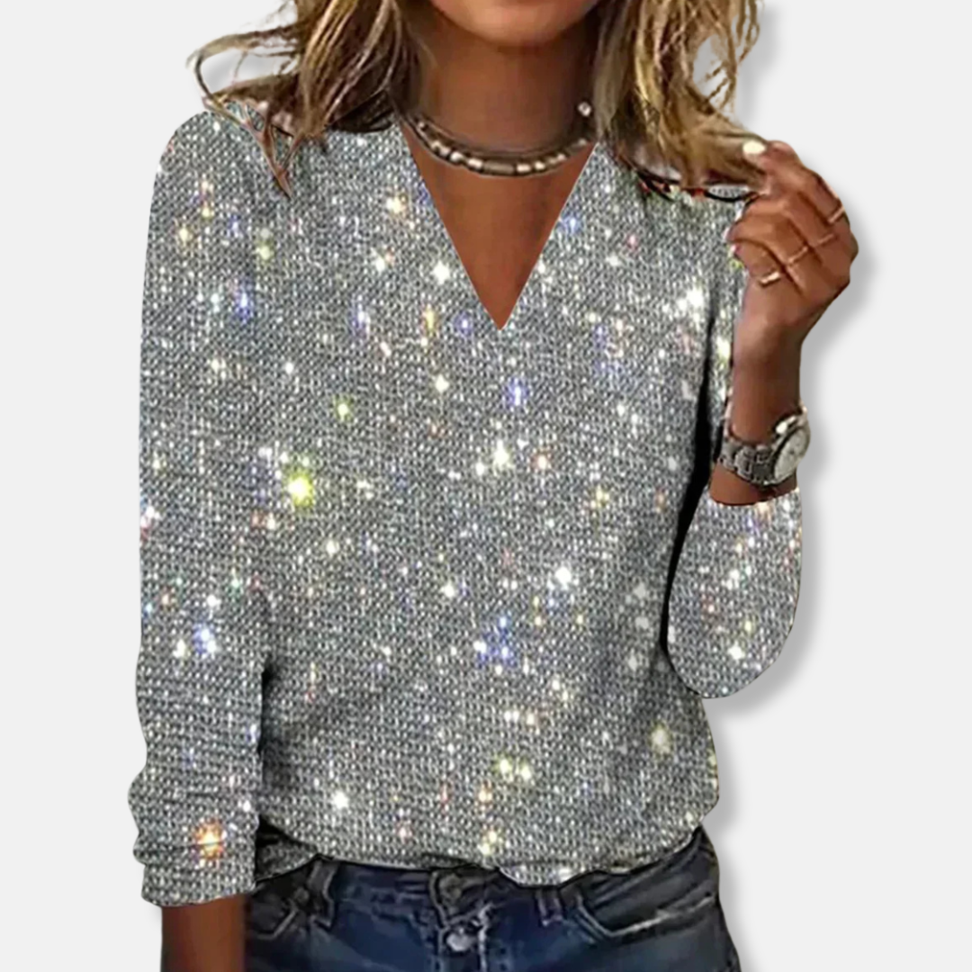 Amelia Glittertopp V-ringad Avslappnad Passform | Lång Ärm Topp