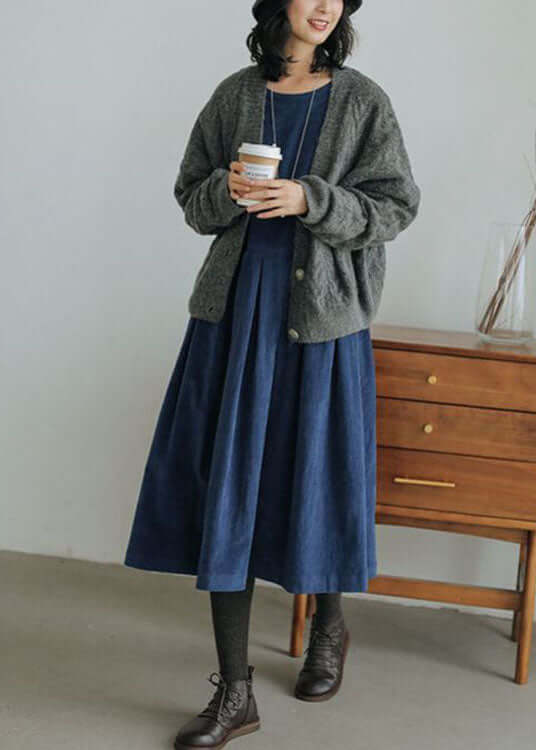 Amelia Oversized A-Linje Klänning | Knappmanschetter Plisserad Klänning