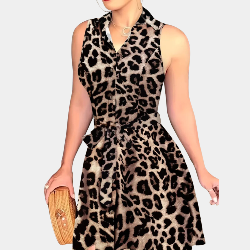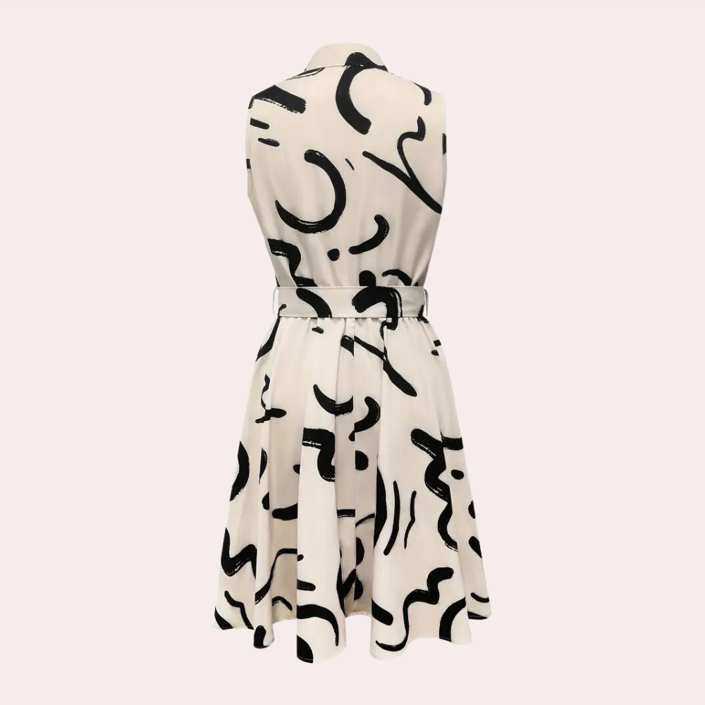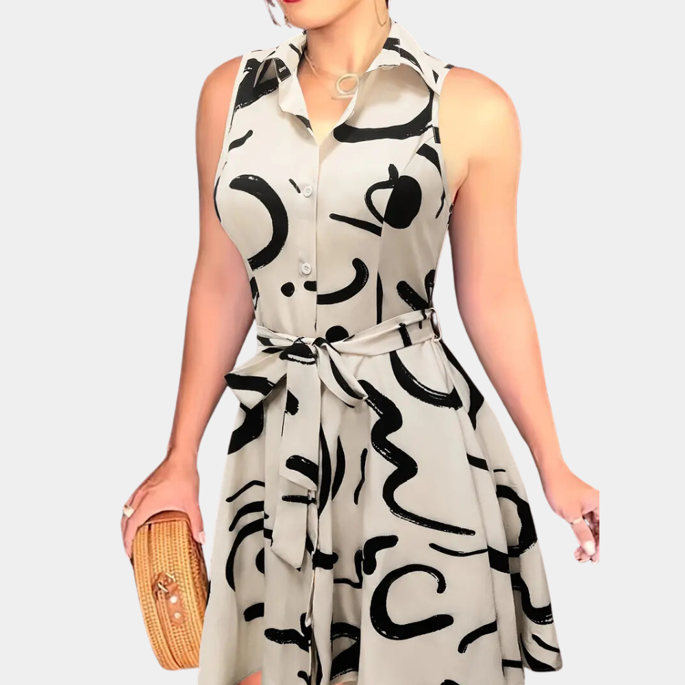Dam Klänning - Ärmlös Skjortkrage - Knappfront - Midjebälte - Elegant Mönster
