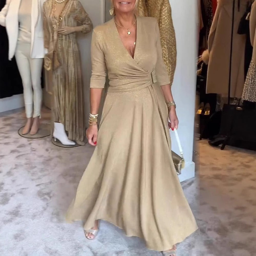 Dam Maxiklänning – Omlottstil – V-ringning – Trekvartsärm – Figurnära och Fodralform