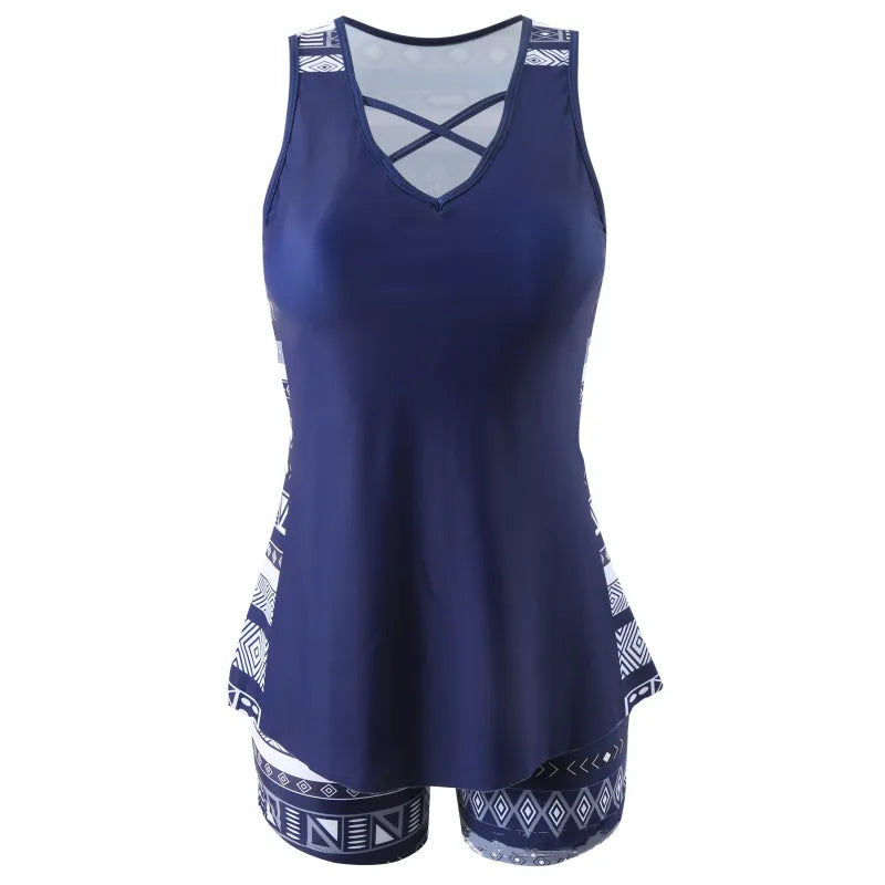 Dam Tankini- V-hals - Lös Passform - Kryssband - Snabbtorkande Strandmode