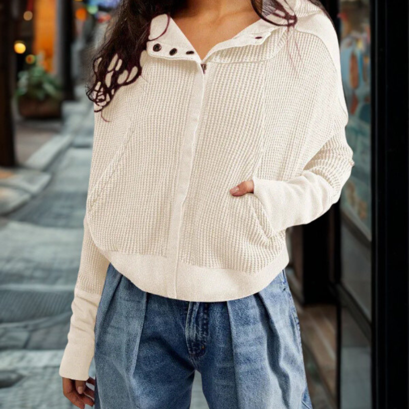 Dam Hoodie – Avkortad Passform – Vågig Stickad Struktur – Tryckknappar – Tumhål