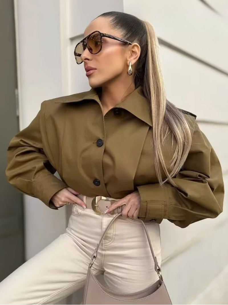 Upptäck vår trendiga Jacka med Strukturerade Axlar & Asymmetrisk Knäppning! Denna avslappnade damjacka i kort modell med strukturerade axlar och unik asymmetrisk knäppning ger en modern touch. Perfekt för stilmedvetna kvinnor som söker en snygg och avslappnad passform.