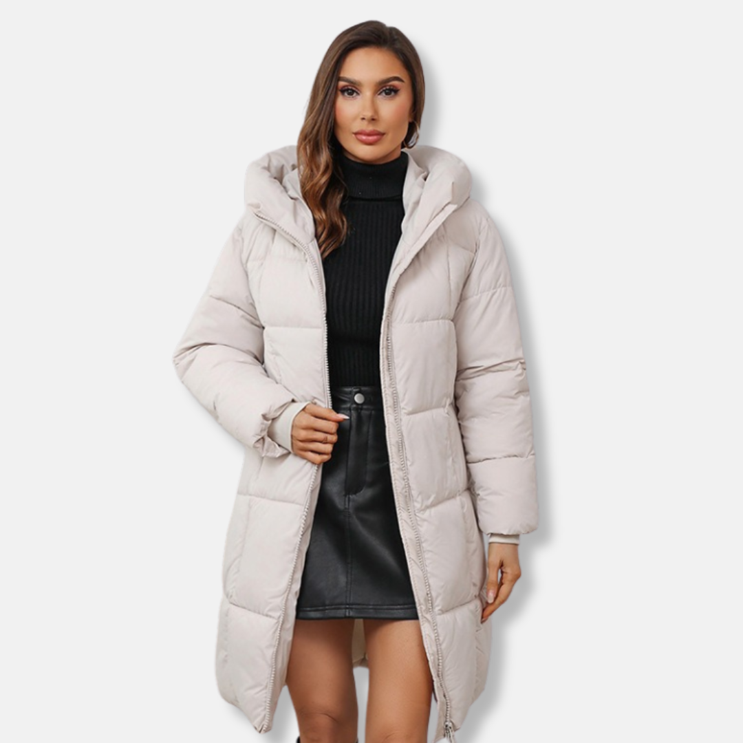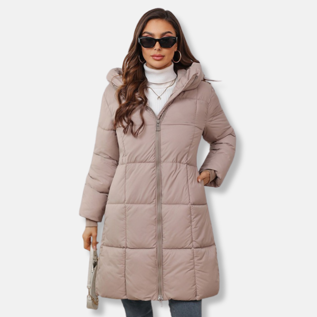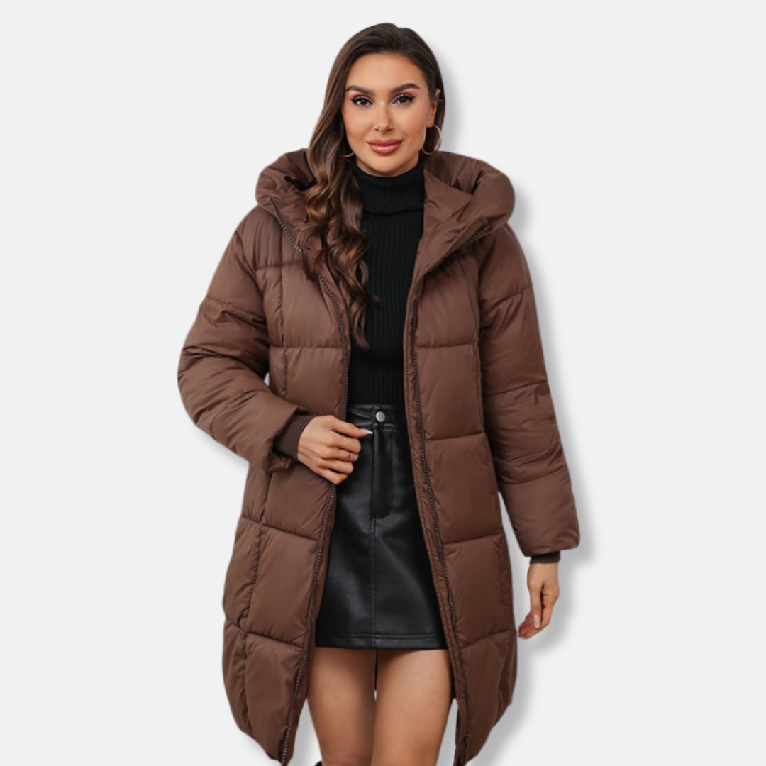 Eva-Janssons Jacka Vadderad med Slim Fit och Huva är den perfekta damjackan för en stilren och bekväm look. Denna mellanlånga, quiltade jacka med dragkedja fram och huva erbjuder värme och en smickrande passform, idealisk för höstens och vinterns kyligare dagar.