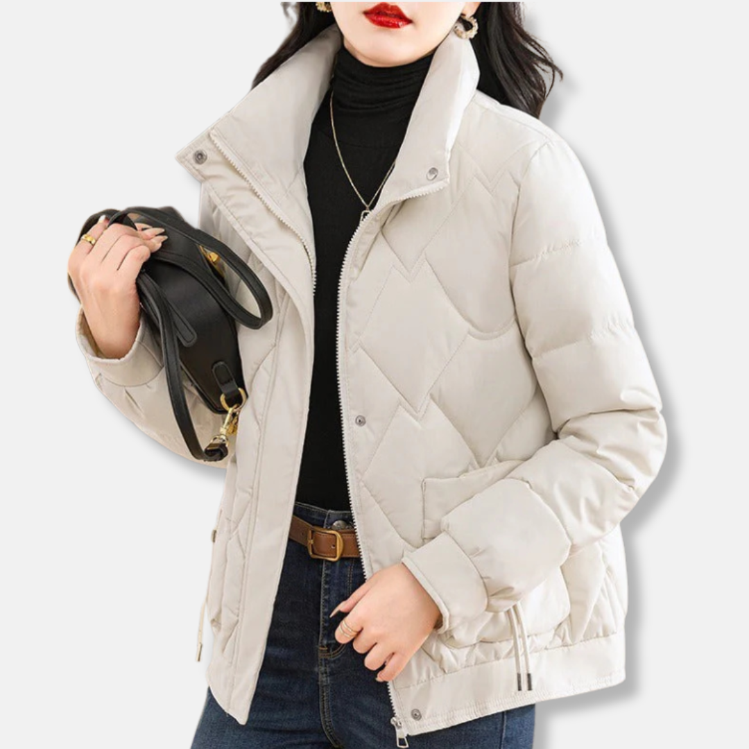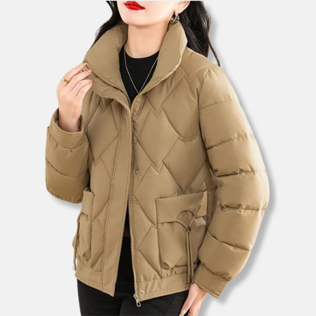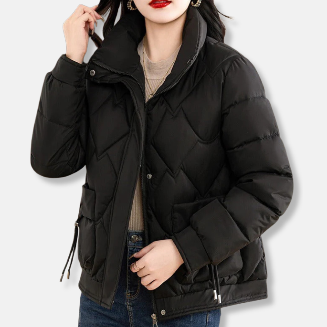 Upptäck vår nya Jacka med Vadderad Quiltning och Hög Krage från Eva-Jansson! En stilren damjacka med normal passform, varm vadderad quiltning, hög krage, justerbar dragsko och praktiska fickor. Perfekt för höstens kyla och vinterdagar. Bekväm och modern för en tidlös look.