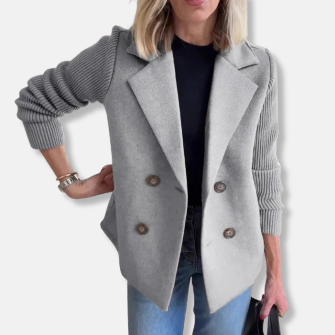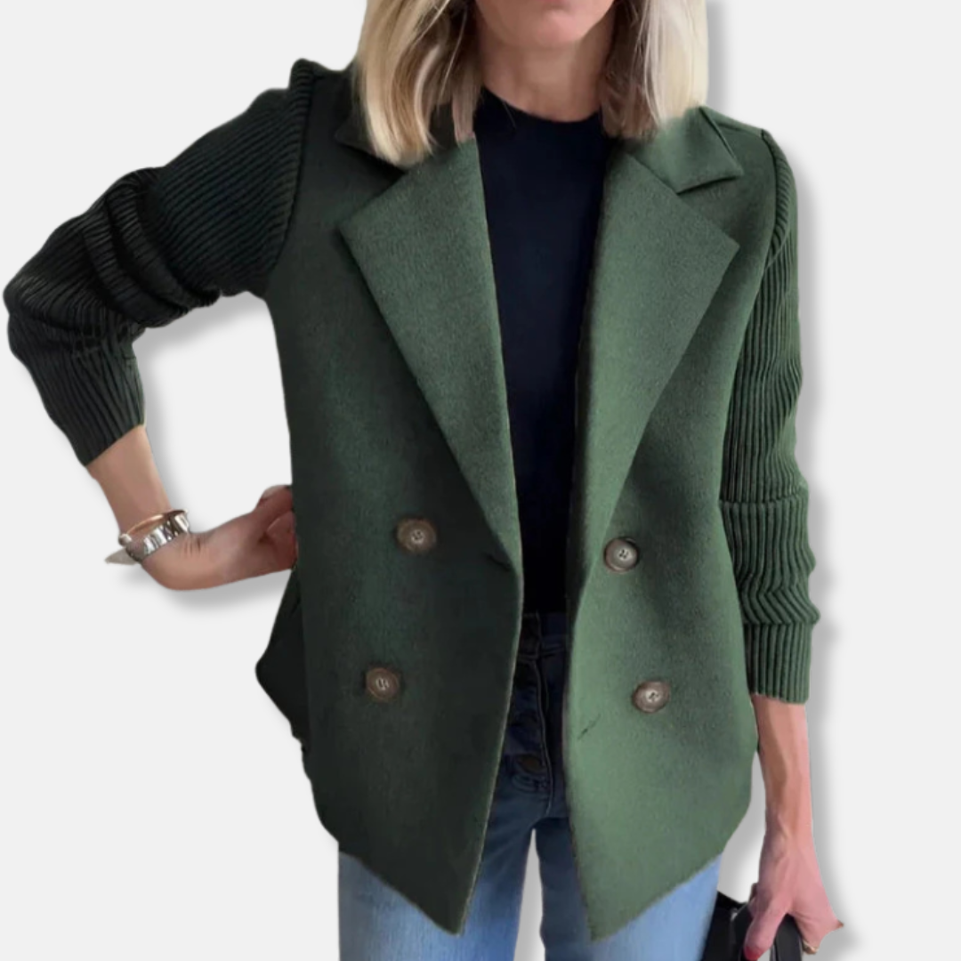 Eva-Janssons nya Kavaj med Figursydd Passform och Ribbstickade Ärmar erbjuder en modern, elegant look. Denna damkavaj med dubbla knappslå framhäver din siluett perfekt. Stilren design för kvinnor som söker både komfort och trend.
