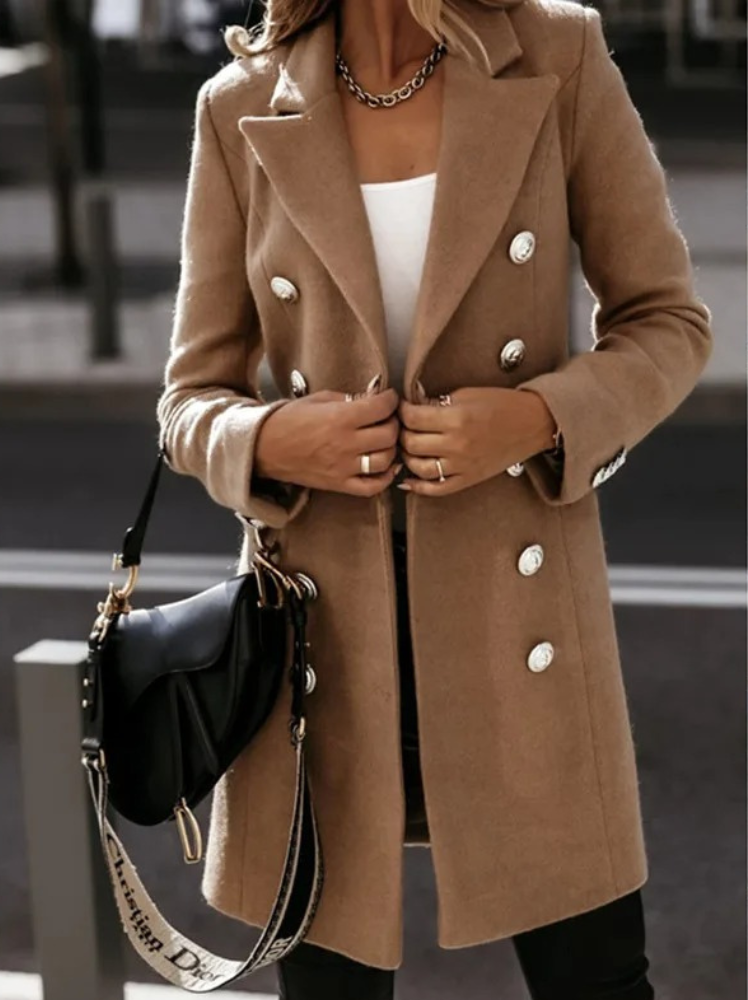 Damkavaj – Skräddarsydd Passform – Dubbelknäppt – Lyxigt Tyg – Medellängd
