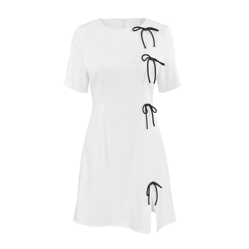 Damklänning A-linje – Kortärmad – Rund halsringning – Rosett – Mini elegant stil