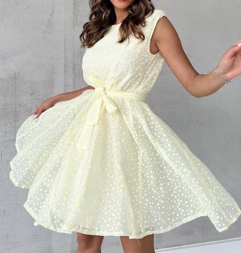 Damklänning A-linjeformad – Ärmlös Figursydd Liv – Midjeband – Luftigt Tyg