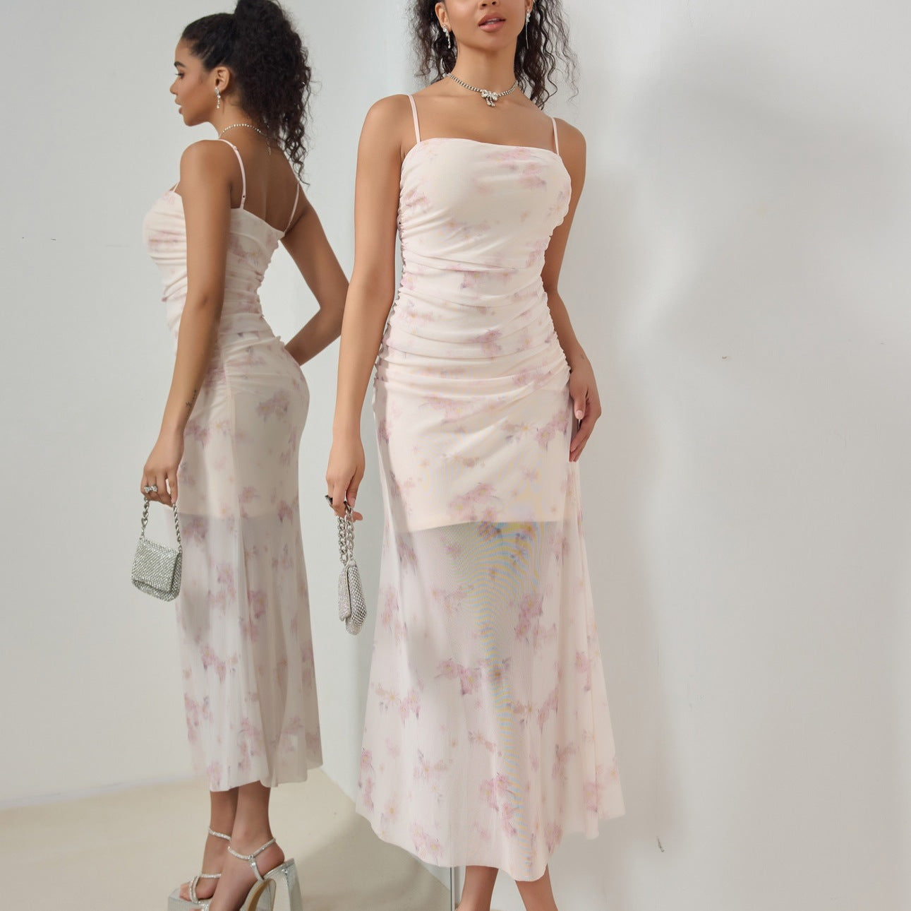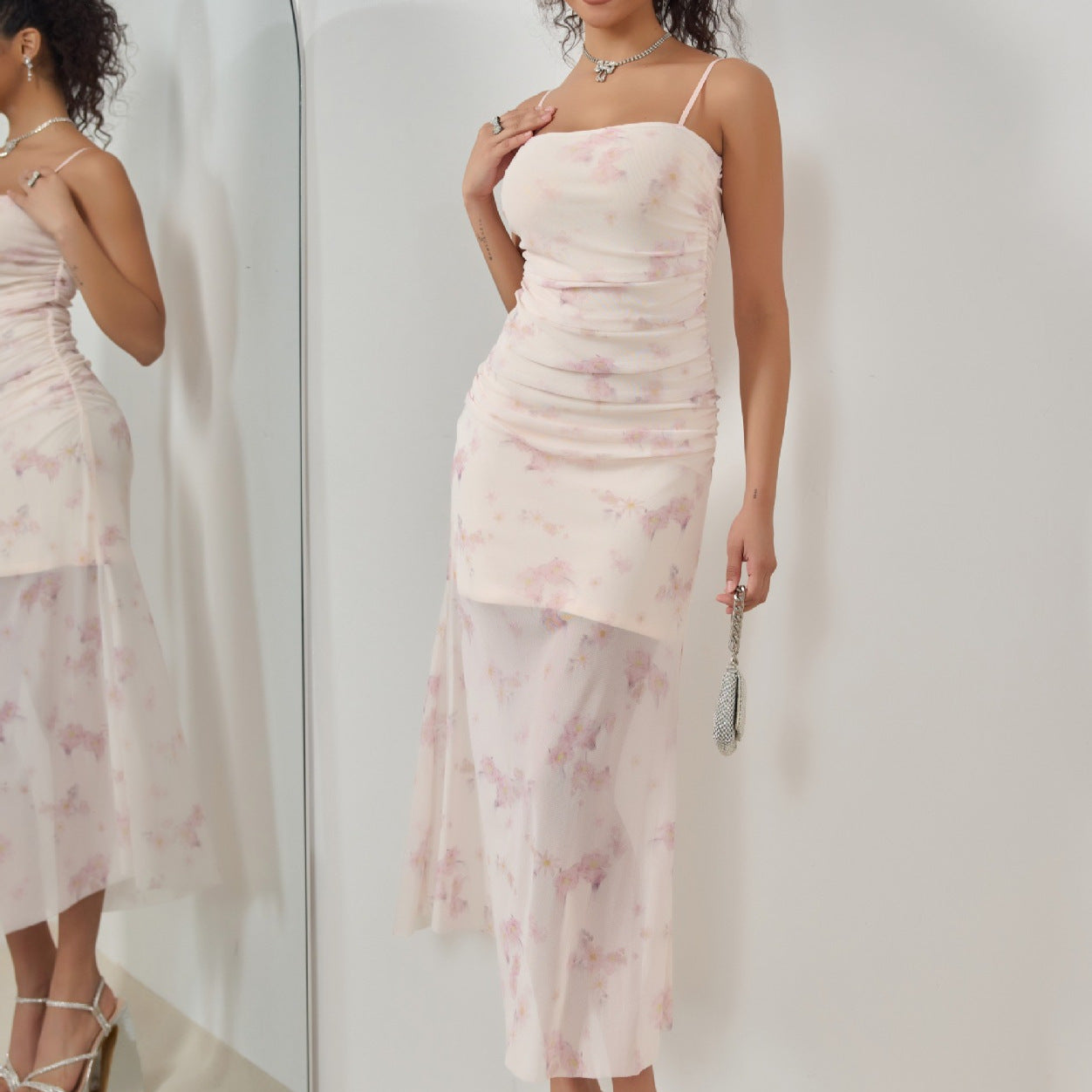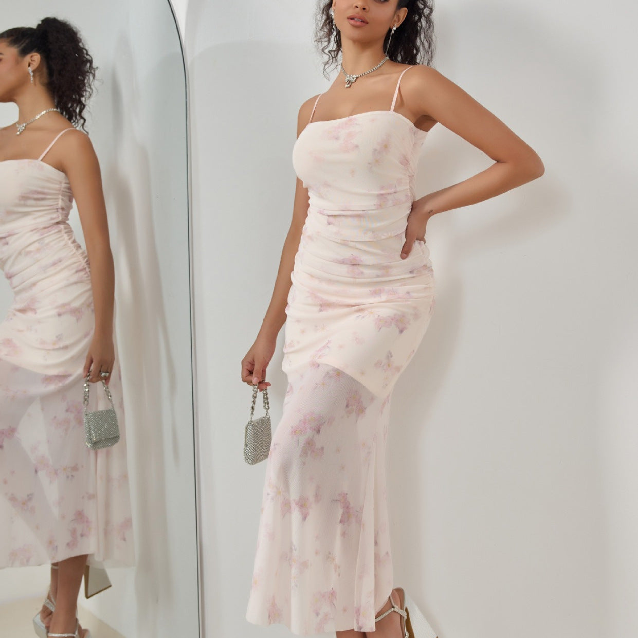 Damklänning – Ärmös Maxiklänning – Slim Fit – Rynkad Liv – Spagettiband – Sjöjungfrusiluett