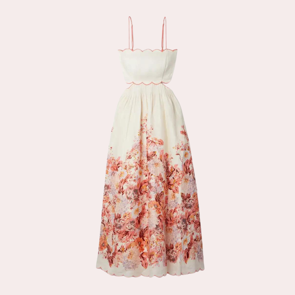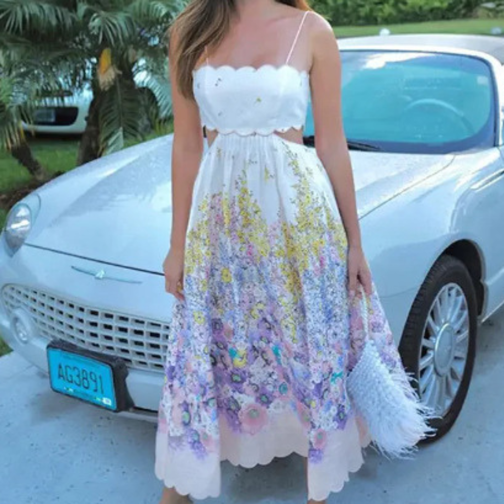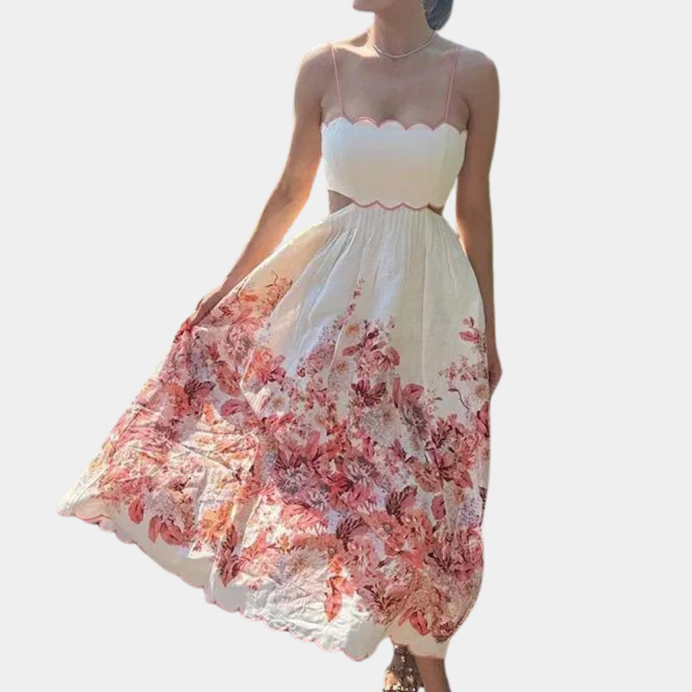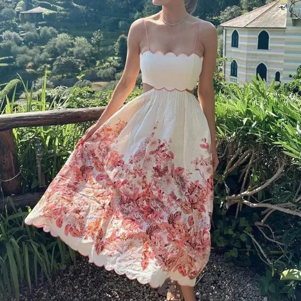 Damklänning – Ärmös Med Spagettiband – A-linje – Blommigt Mönster – Utskuren Midja