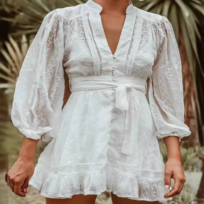 Damklänning – Figursydd Minilängd – Långärmad med Volang – Justerbar Midja