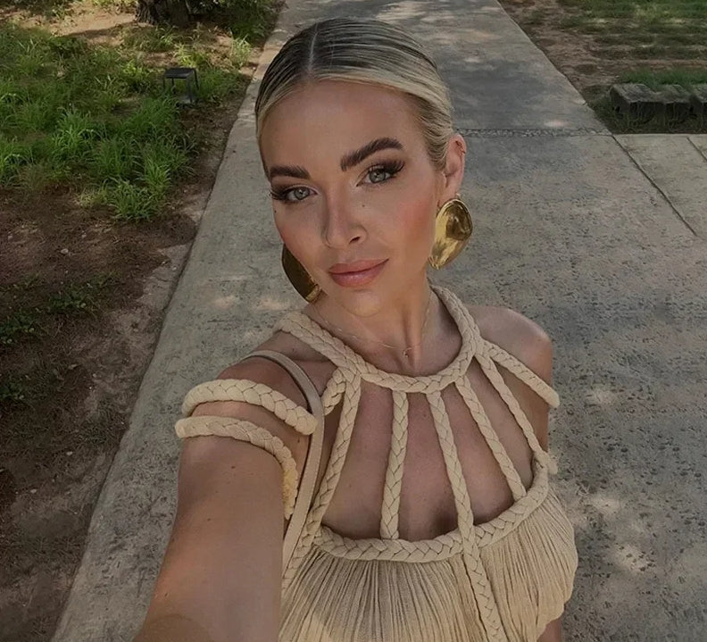 Damklänning – Fullängd – Avslappnad Passform – Halterneck – Flätad Detalj – Naturfiber