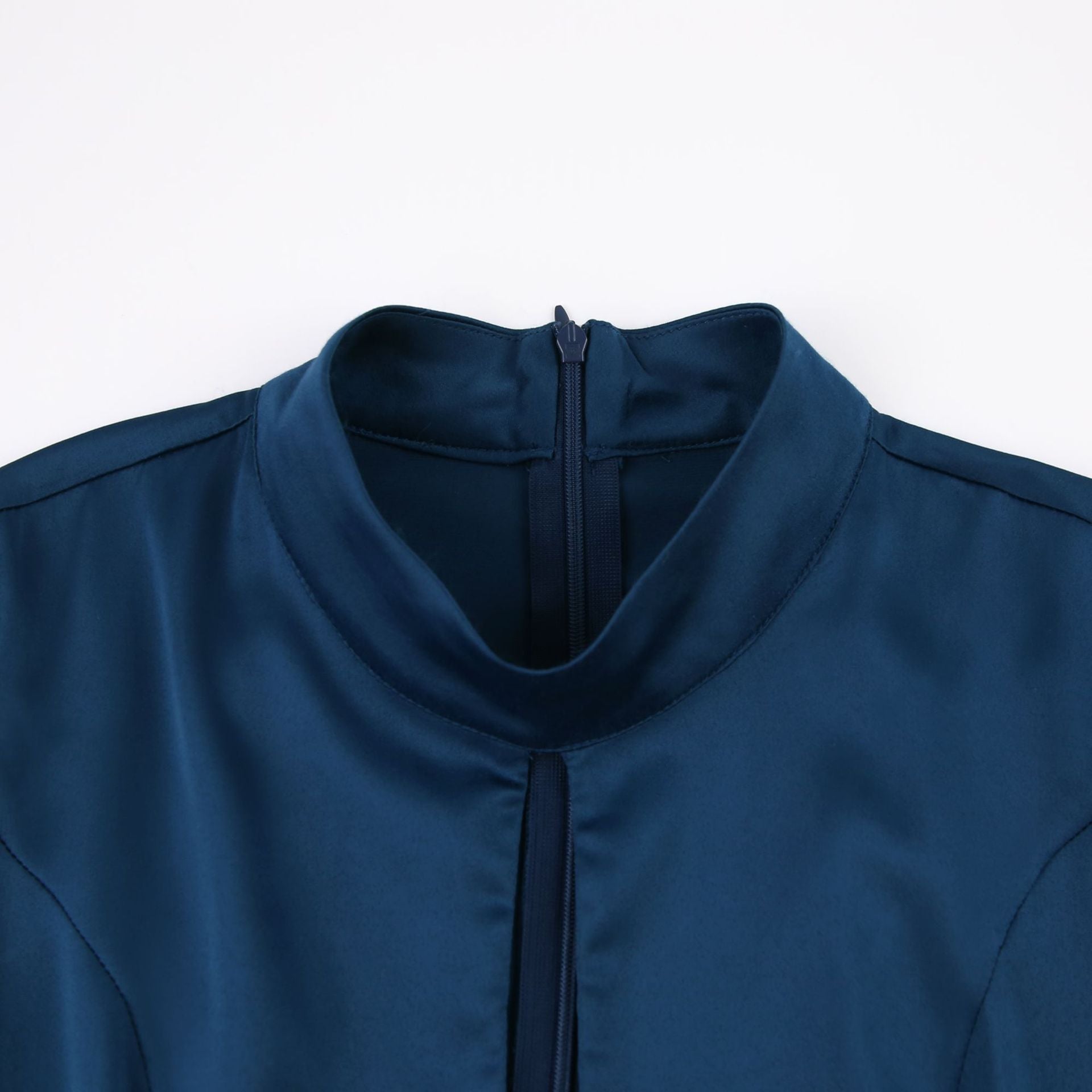 Damklänning – Lång Satinklänning – Hög Hals – Puffärm – Elegant Figursydd Passform