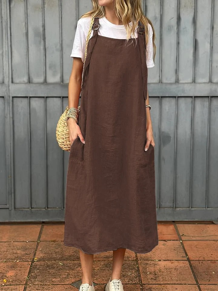 Damklänning – Linne – Avslappnad Passform – Justerbara Axelband – Midilängd – Fickor