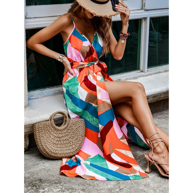 Damklänning maxi – Djup V-ringning – Ärmlös – Hög slits