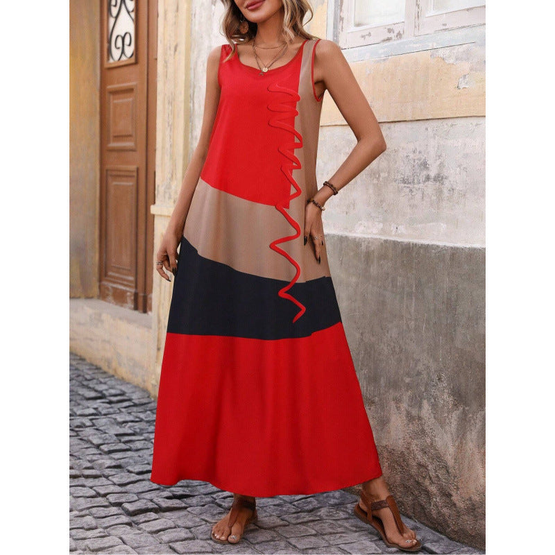 Kombinera denna Damklänning maxi med stilrena sandaler för en luftig sommarlook, eller addera en tunn kofta och sneakers för en avslappnad men chic vardagsstil.