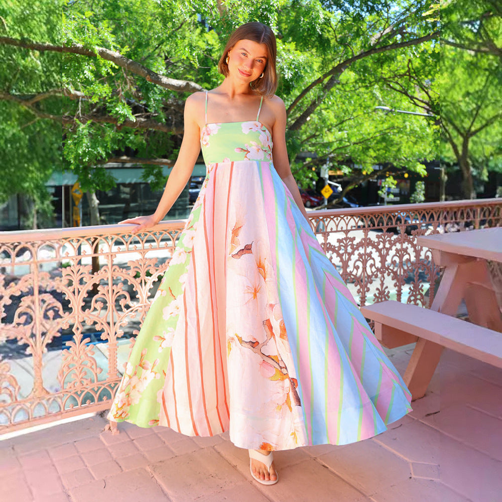 Damklänning maxi – Flowy passform – Spagettiband – Bomull – Graffitimönster