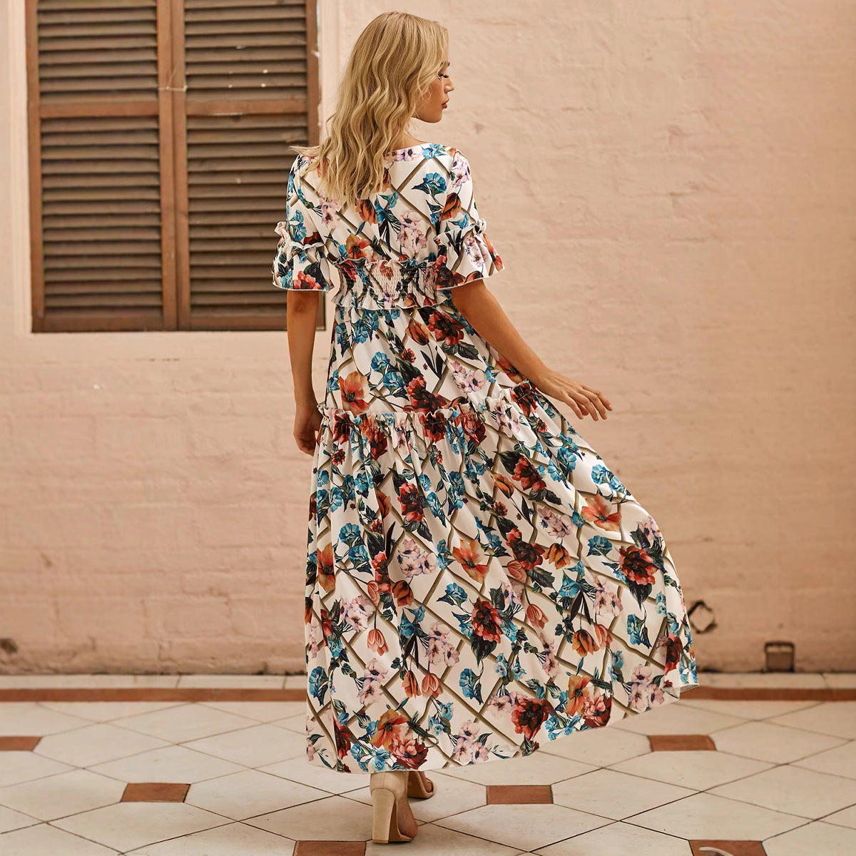 Bär denna Damklänning maxi med sandaler och en stråväska för en perfekt sommarlook, eller matcha med klackar och smycken för festliga tillfällen.