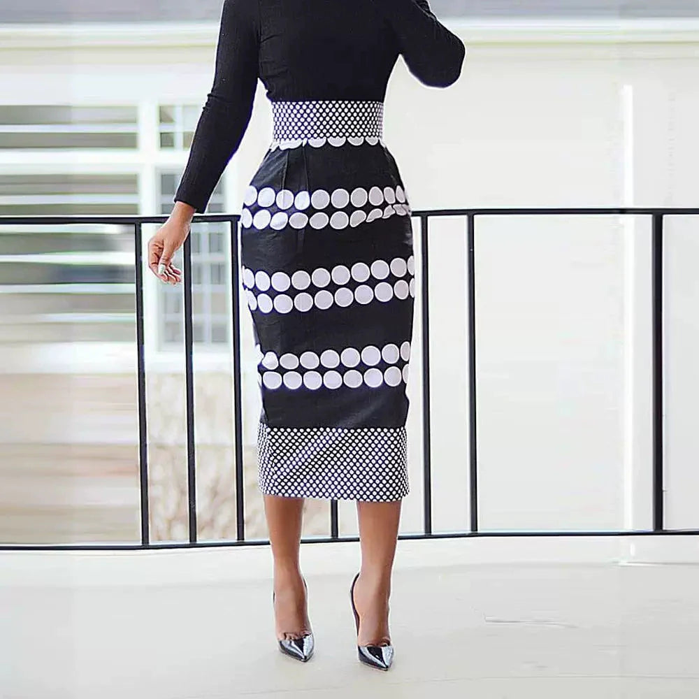 Bär denna prickiga midi klänning med eleganta stövlar och en blazer för en sofistikerad kontorslook, eller matcha den med enkla sandaler för en avslappnad sommarkväll.