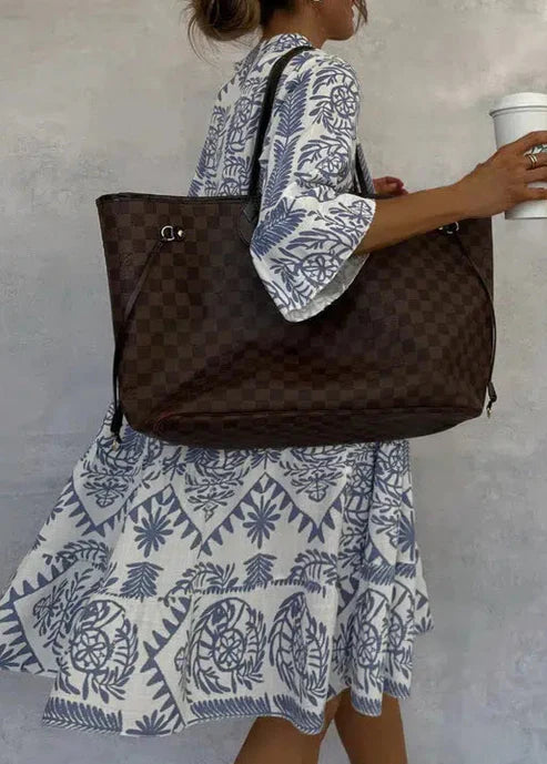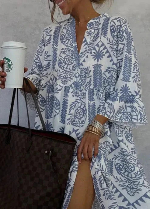 Damklänning – Miniklänning – V-ringning – 3/4-ärm – Avslappnad Passform – Luftigt Tyg