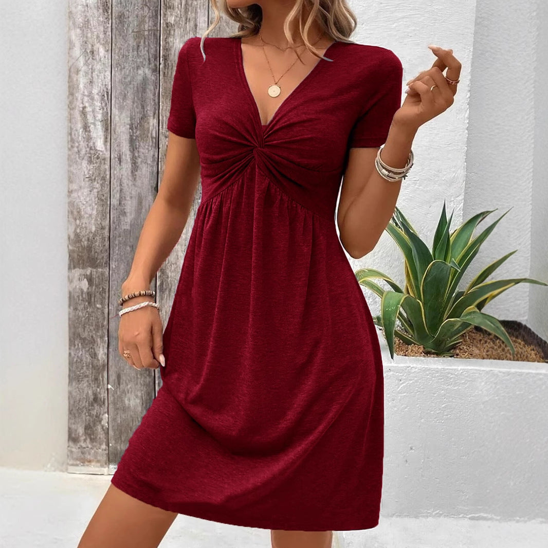 Damklänning – Mjukstickad – V-ringning – Twistfront – Kort ärm – Avslappnad passform