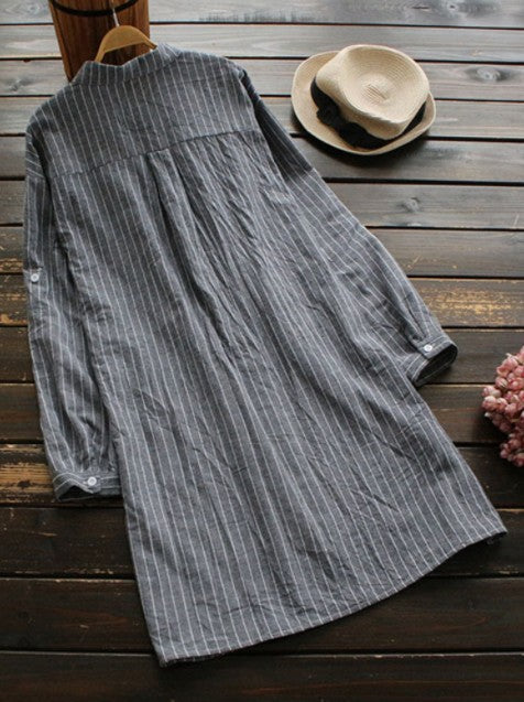 - Design: Randig, rak passform med knäppning