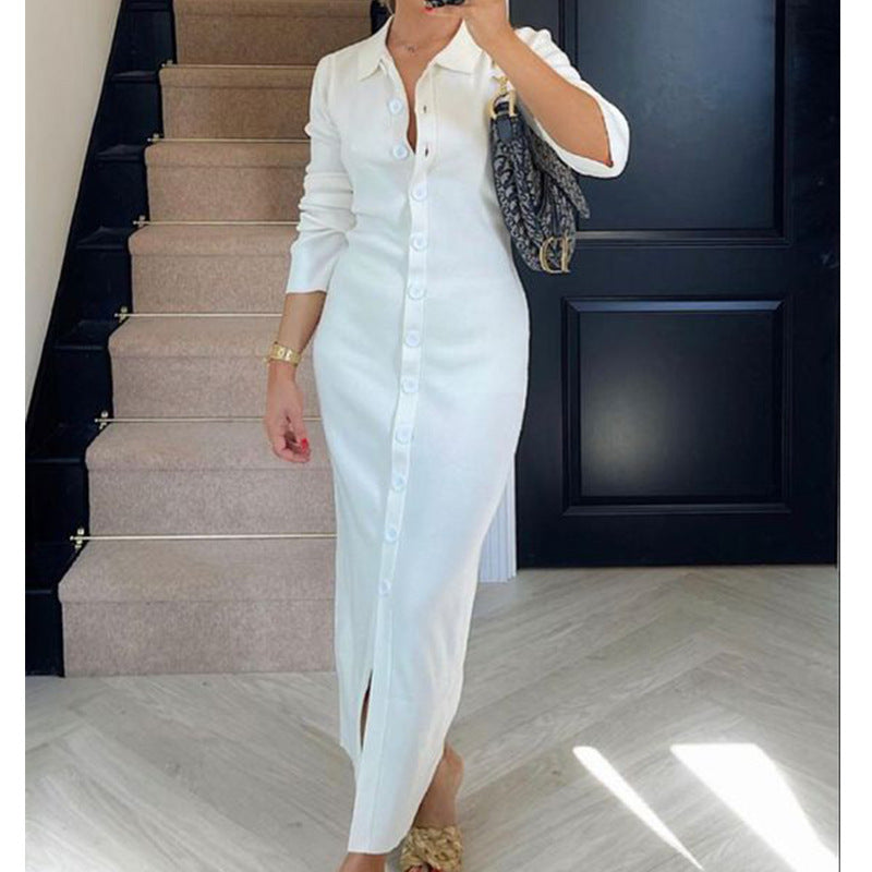 Damklänning skjortmodell – Slim Fit – Långärmad – Knäppning – Elegant kontorsstil