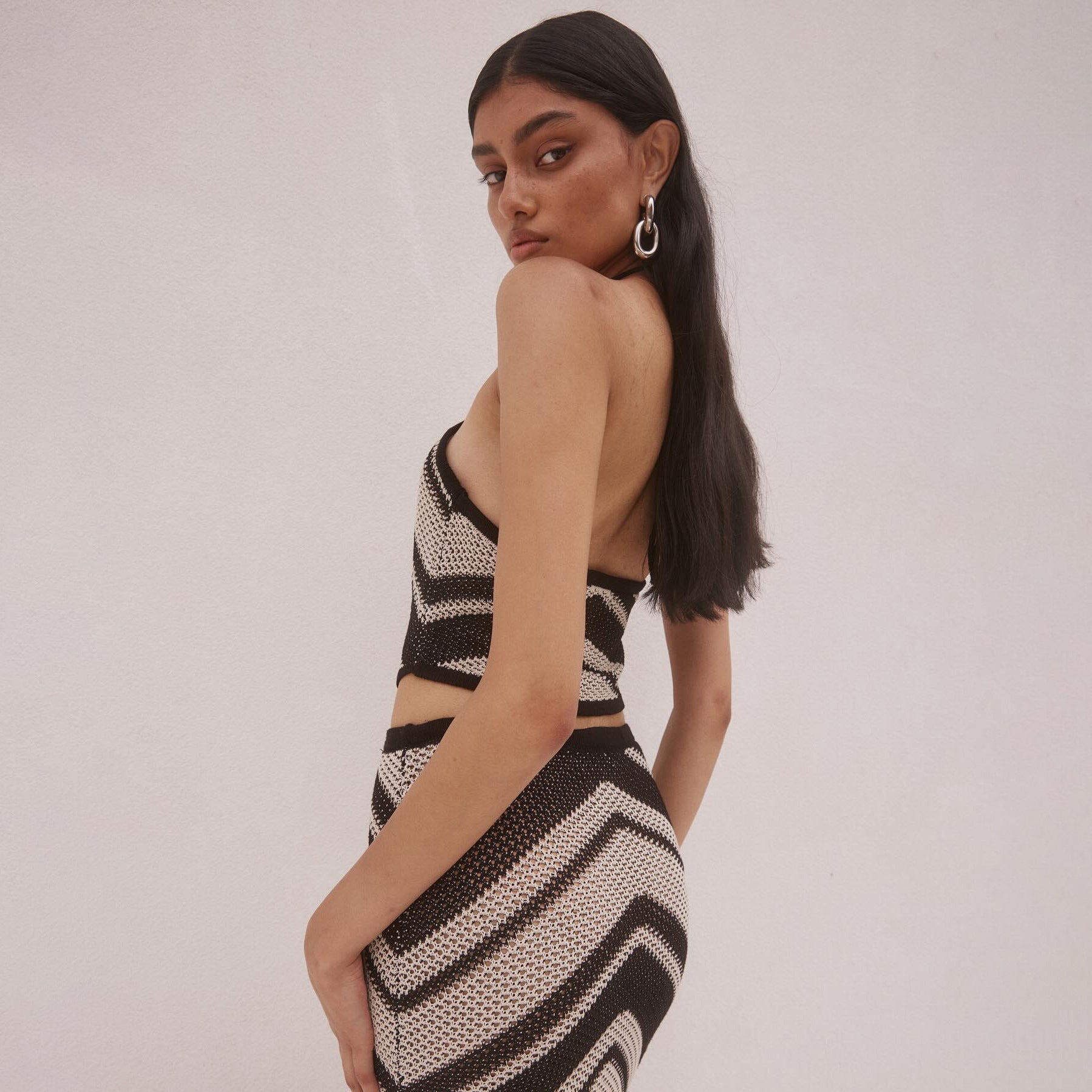 Damklänning – Stickad Bodycon – Halterneck – Utskärning – Geometriskt Mönster – Midilängd