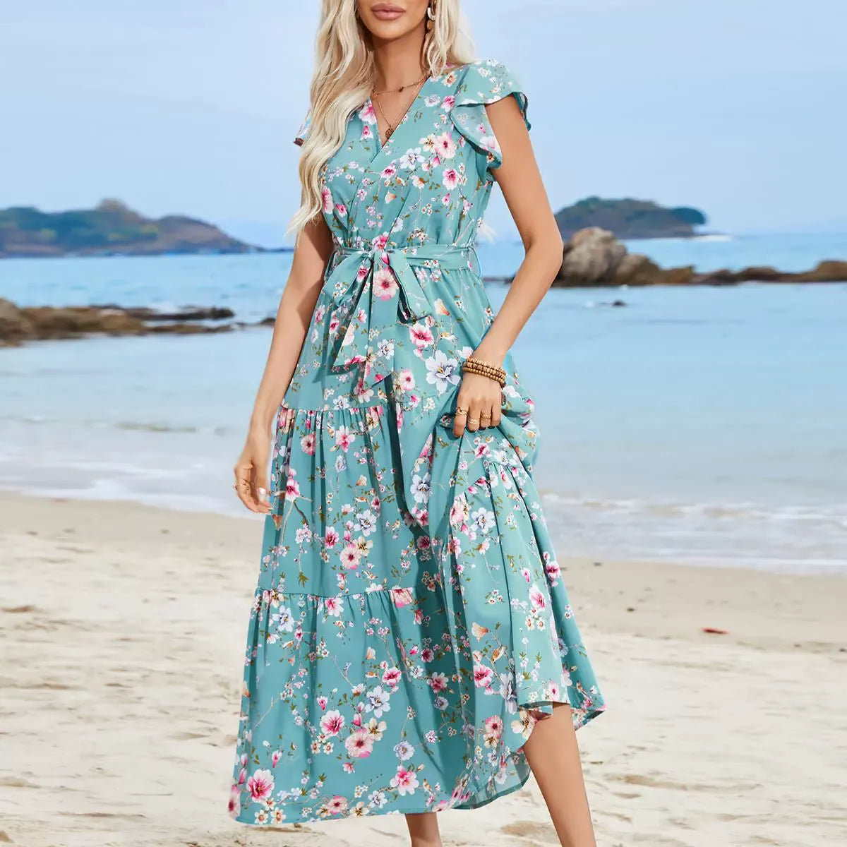Bär denna underbara damklänning med sandaler för en luftig sommarlook, eller matcha med en jeansjacka och sneakers för en trendig vardagsstil.