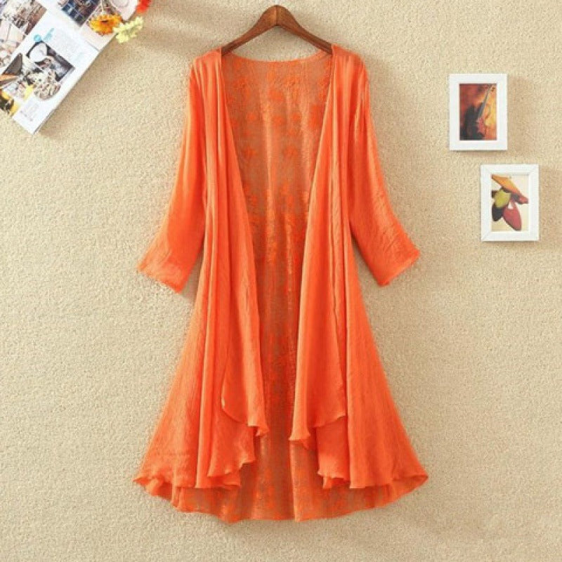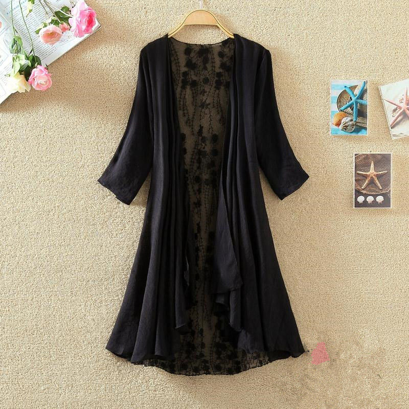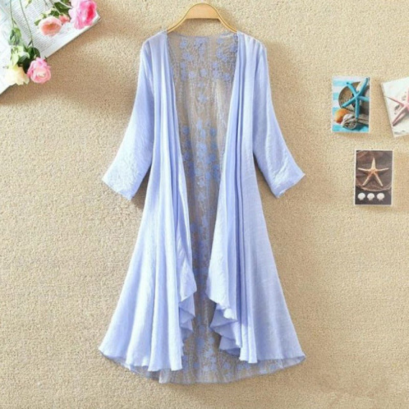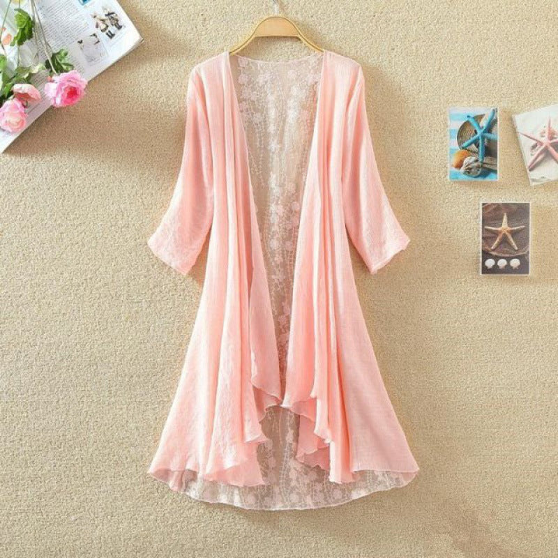 Damkofta – Lös Passform – Andningsbart Tyg – Spetsrygg – Öppen Front – Lång Ärmslut