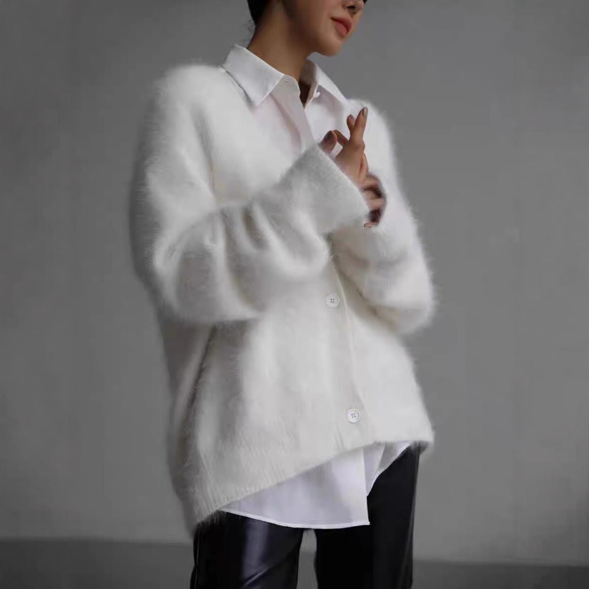 Damkofta – Oversize avslappnad passform – Mjuk fluffig stickad – V-ringning med knappar