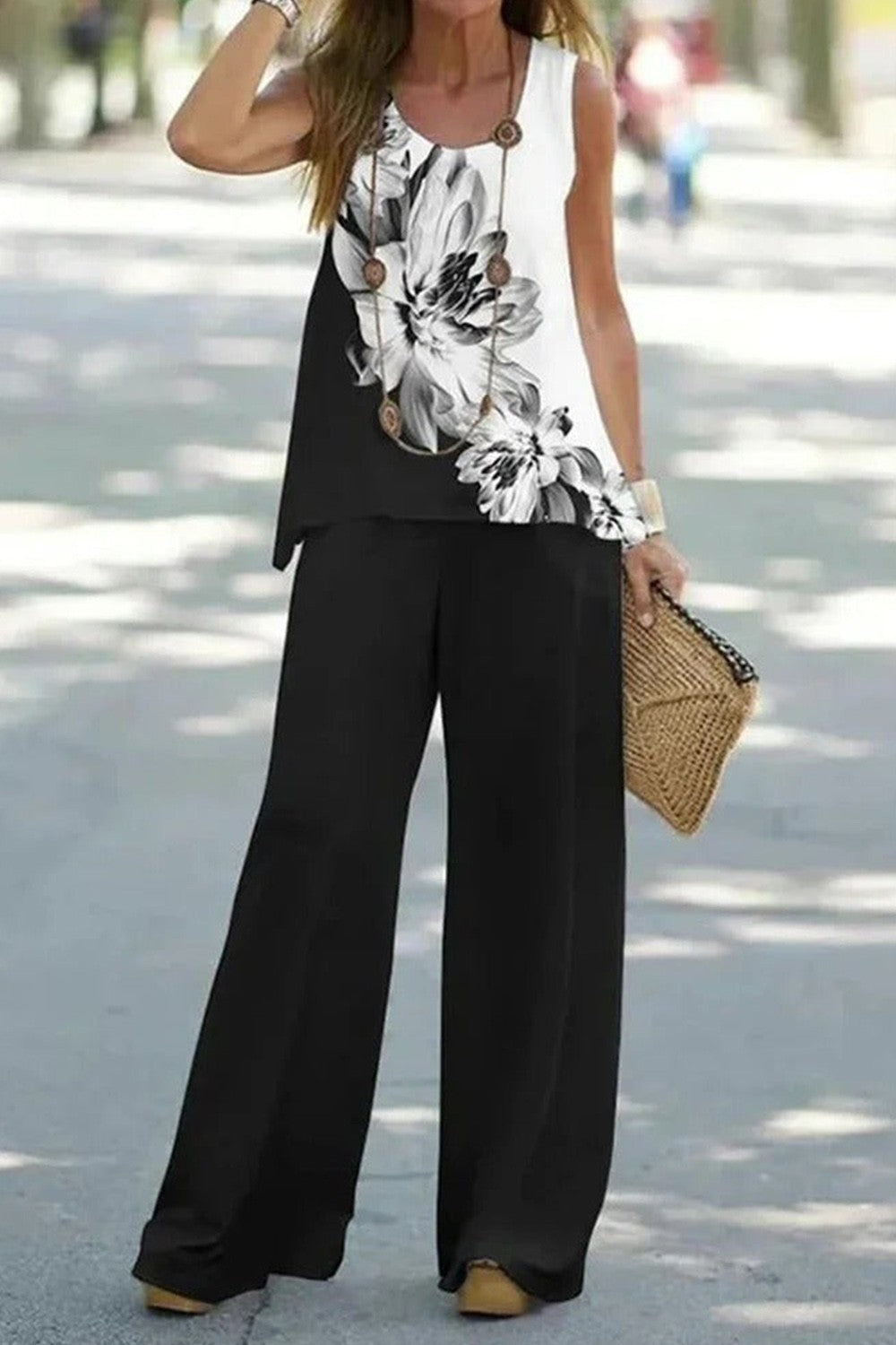 Upptäck Tvådelat set för kvinnor – Avslappnad passform – Rund hals – Blommigt mönster – Knappdetaljer – Andningsaktiv textil. Detta feminina tvådelade set kombinerar komfort och stil med sin luftiga passform, blommiga design och dekorativa knappdetaljer. Det andningsaktiva materialet gör det perfekt för varma dagar och avslappnade tillfällen.