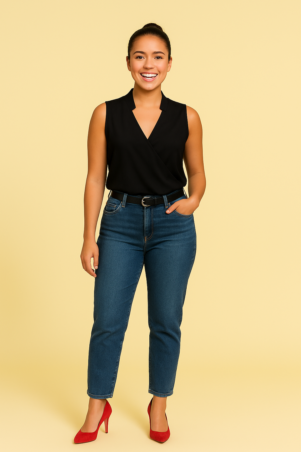 Bär detta eleganta linne med en skräddarsydd kjol för kontoret eller jeans och sandaler för en avslappnad sommarlook.