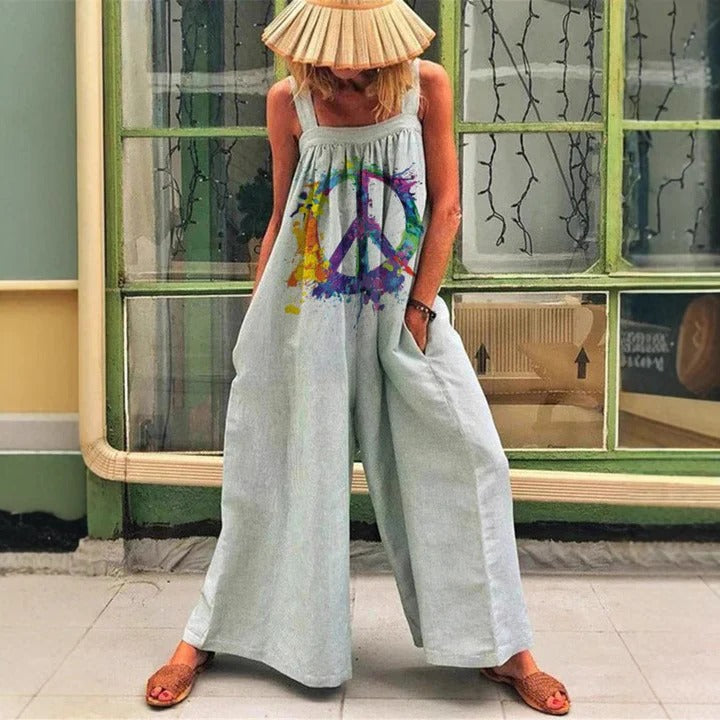 Damoverall – Vida Ben – Ärmlös Avslappnad Passform – Andningsbart Bomullstyg – Konstnärligt Mönster