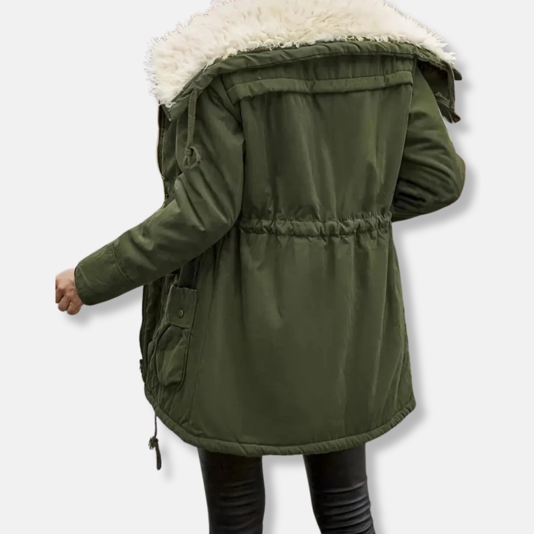 Damparkas – Medellång Passform – Justerbar Midja – Fuskpälskantad Huva – Flera Fickor