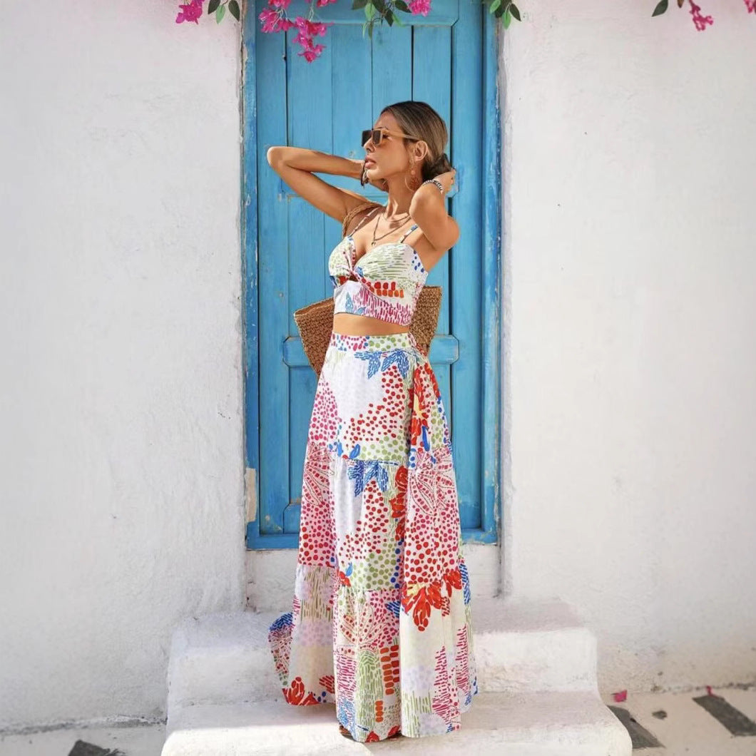 Damset – Ärmlös Crop Top – A-linjekjol i Bomullsblandning – Lätt och Andningsbar