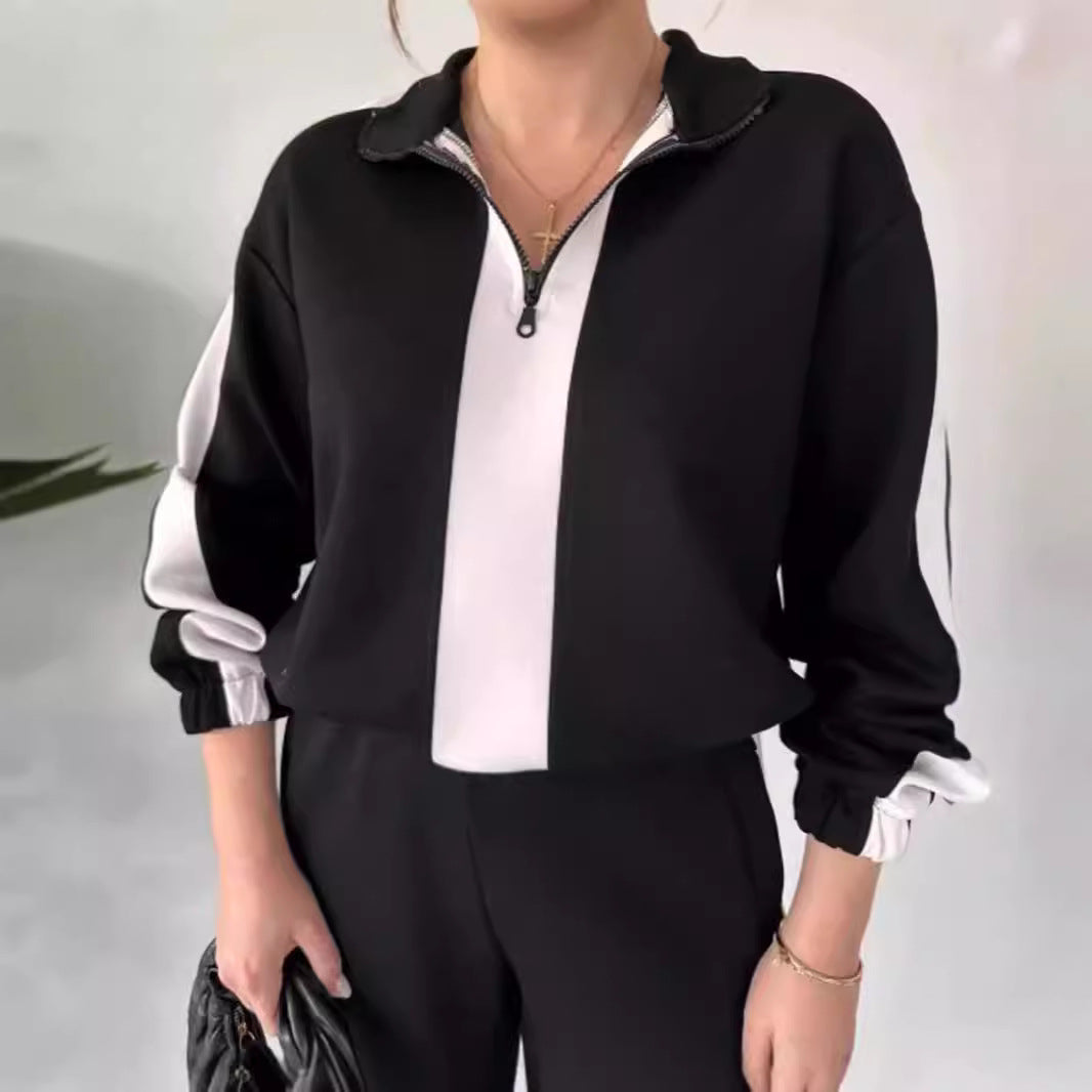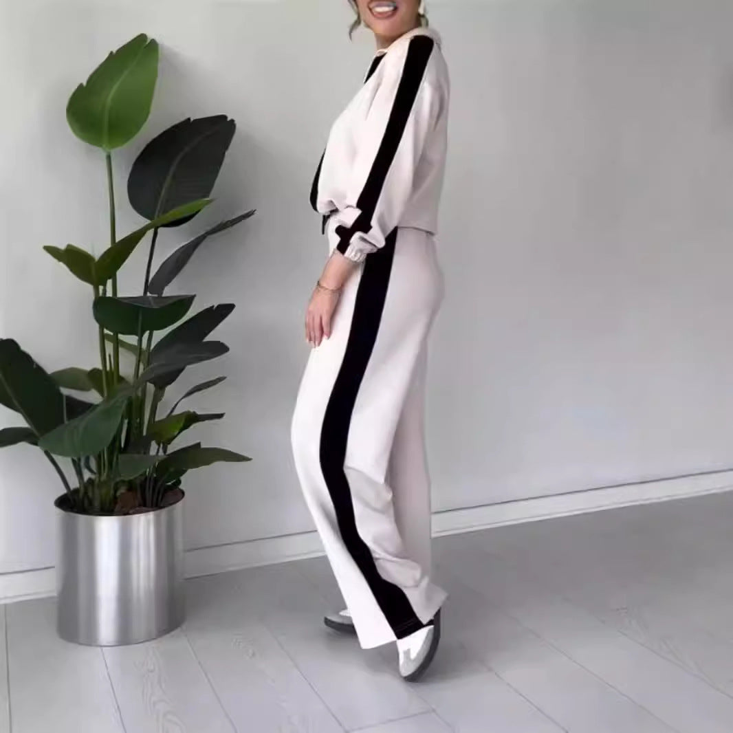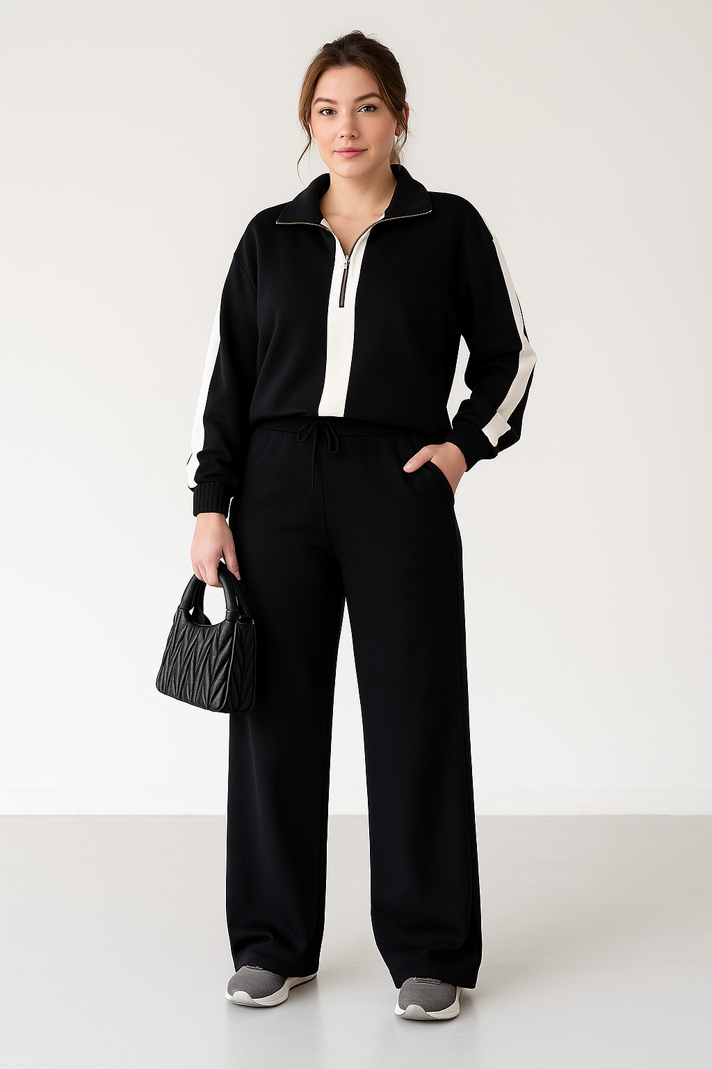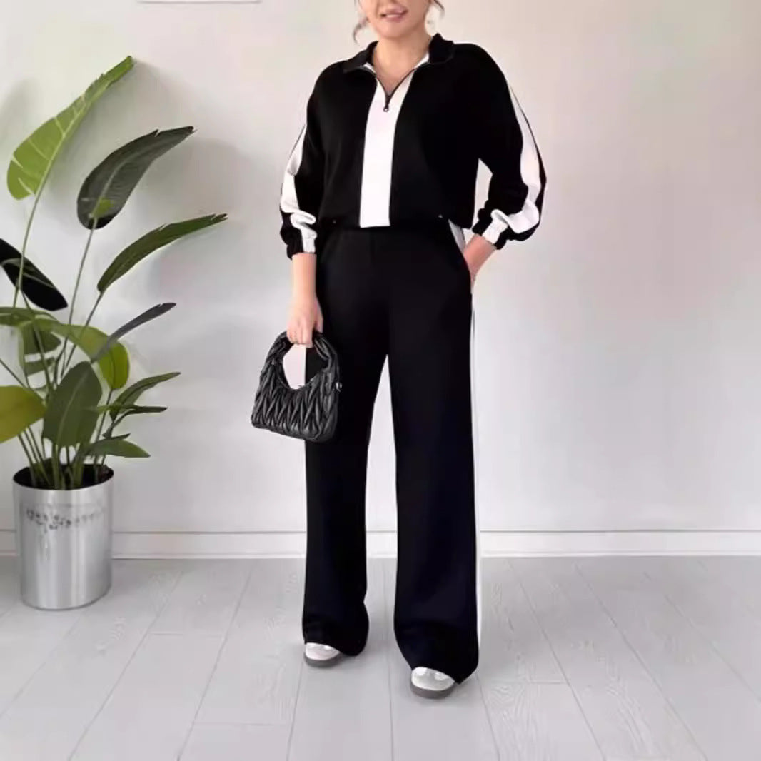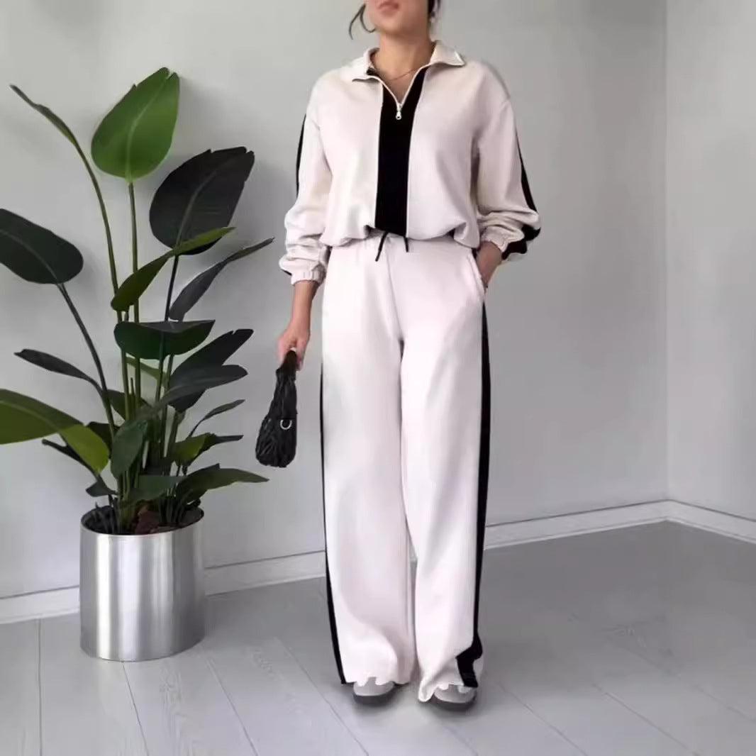 Damset i två delar – Avslappnad passform – Dragkedjekrage – Vida ben – Andningsbart tyg