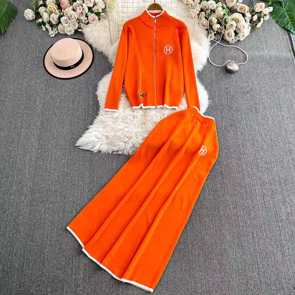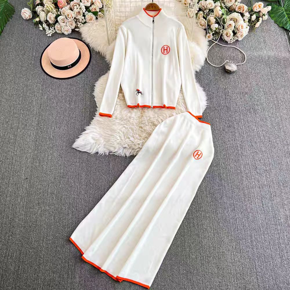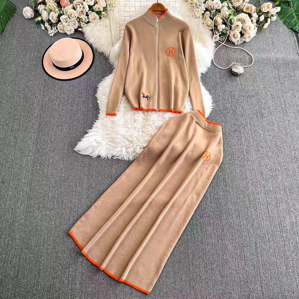 Damset kofta och kjol – Ullmix – Normal passform – Dragkedja – Broderade detaljer