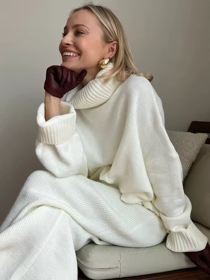 Damset – Stickad Polotröja Oversize och Maxikjol – Mjuk Ullkänsla – Avslappnad Passform