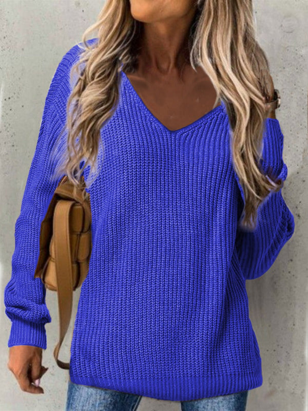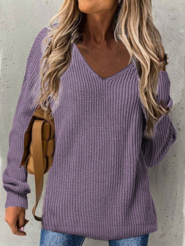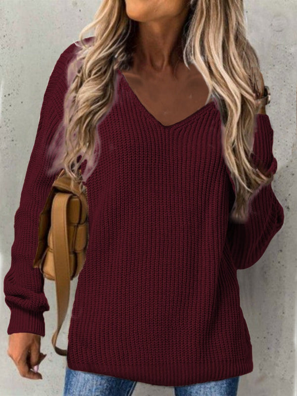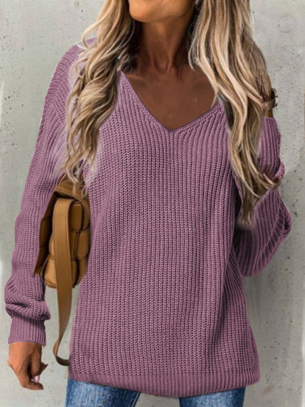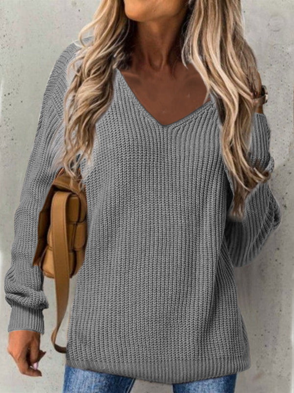 Damstickad Tröja – Lös Passform – V-ringning – Långärm – Ribbad Textur