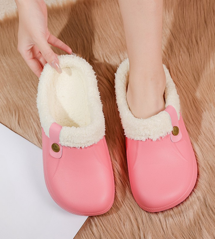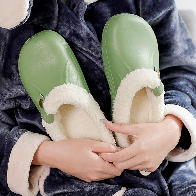 Damtofflor – Bred passform – Fleecefodrade – Vattenavvisande – Halksäker sula