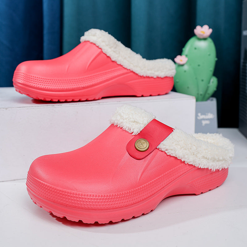 - Design: Avslappnad toffel med bred passform, fleecefoder och halksäker sula
