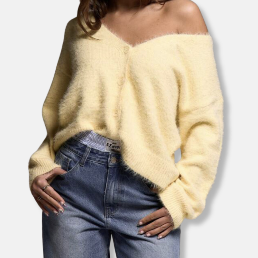 Damtop – Oversized Passform – Borstad Stickad Struktur – V-ringning med Knappar