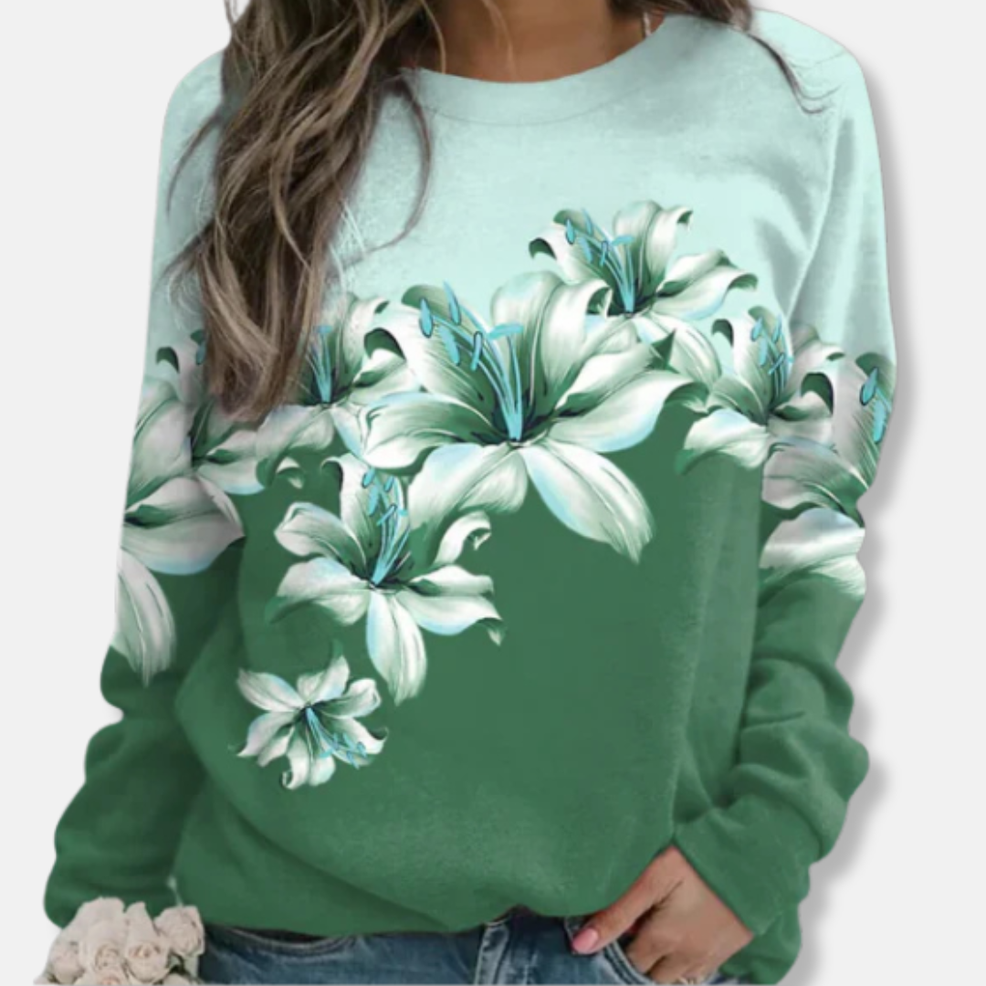 Damtröja – Avslappnad Passform – Blommigt Tryck – Lång Ärmar – Mjuk Bomull