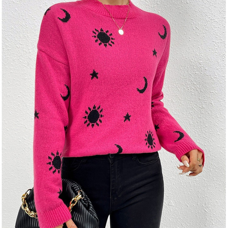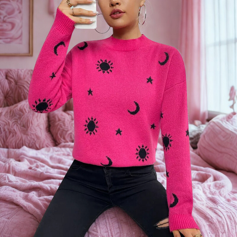 Damtröja – Avslappnad Passform – Jacquardstickad – Rund Hals – Lång Ärm – Svampmotiv