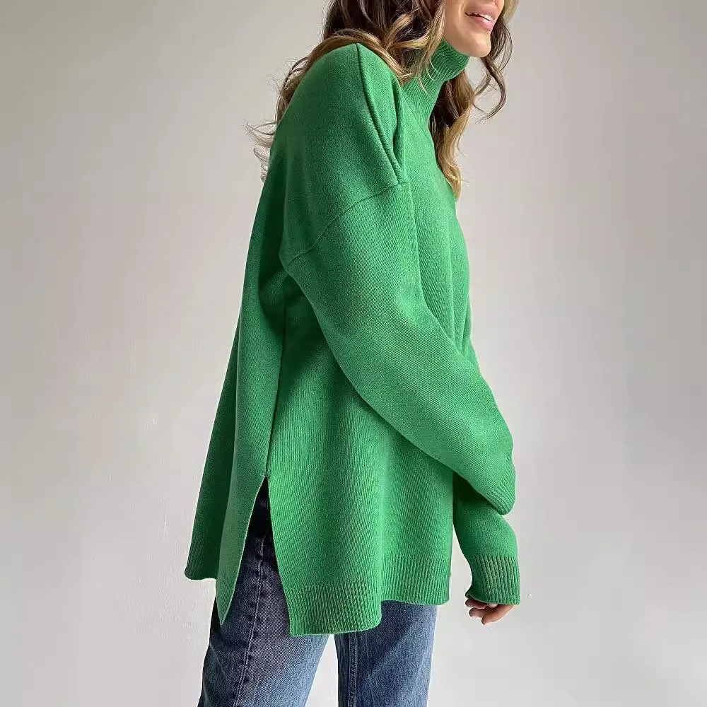 Damtröja med polokrage – Oversize passform – Ribbstickad krage och muddar – Mjuk stickad struktur