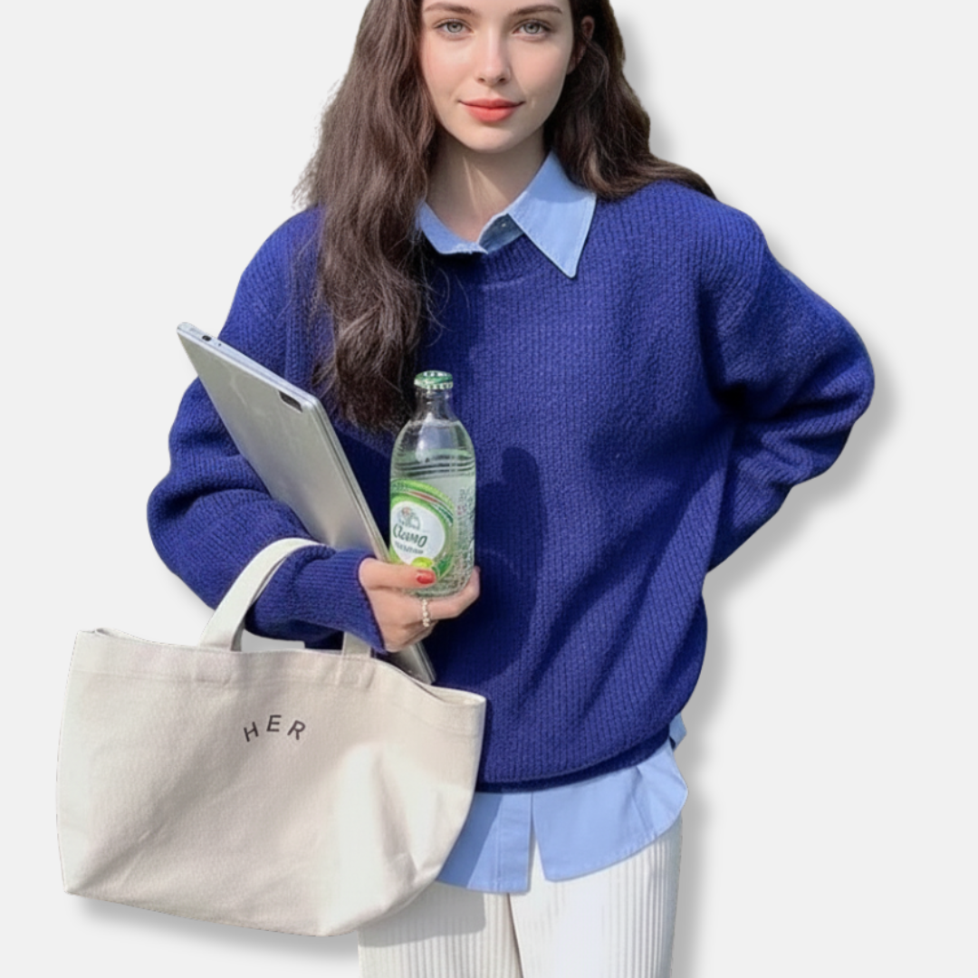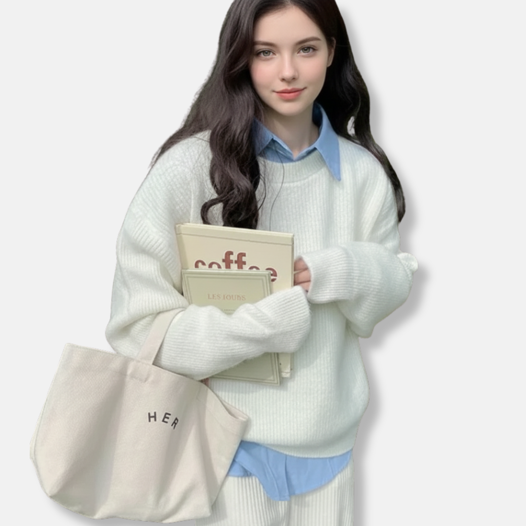 Damtröja – Oversize Passform – Mjuk Stickad – Ribbad Kant – Avslappnad Stil