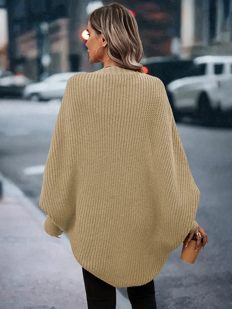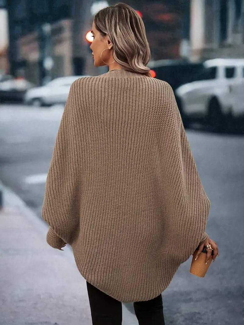 Med en trendig öppen-front design som draperar vackert, har denna kofta en avslappnad passform som passar alla kroppstyper. Fladdermusärmarna och den lösa silhuetten lägger till en chic, modern touch, som enkelt parar ihop med vilken outfit som helst.