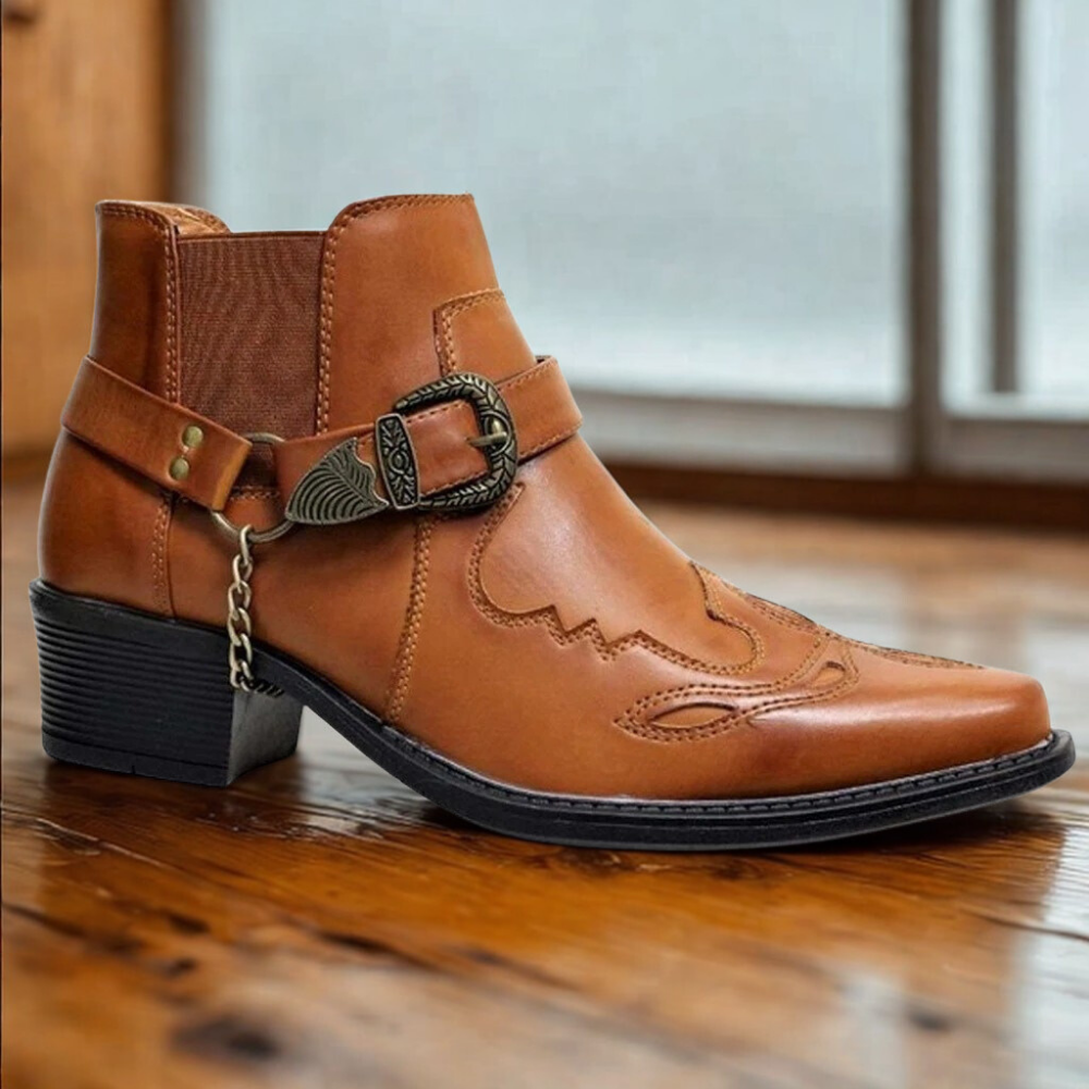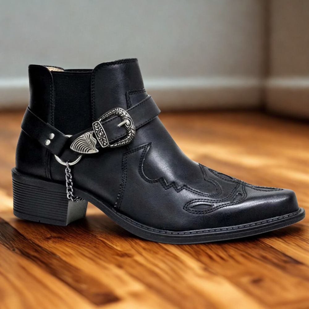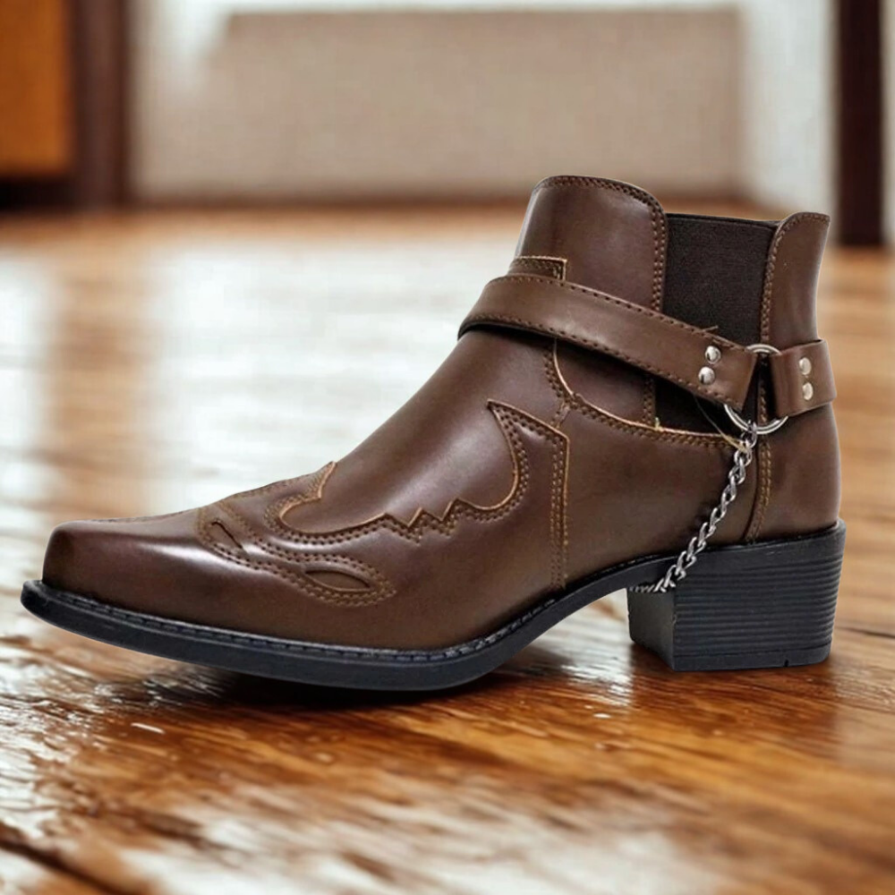 Herr Ankelstövlett - Läder - Spetsig Tå - Blockklack - Dekorativ Spänne & Kedja